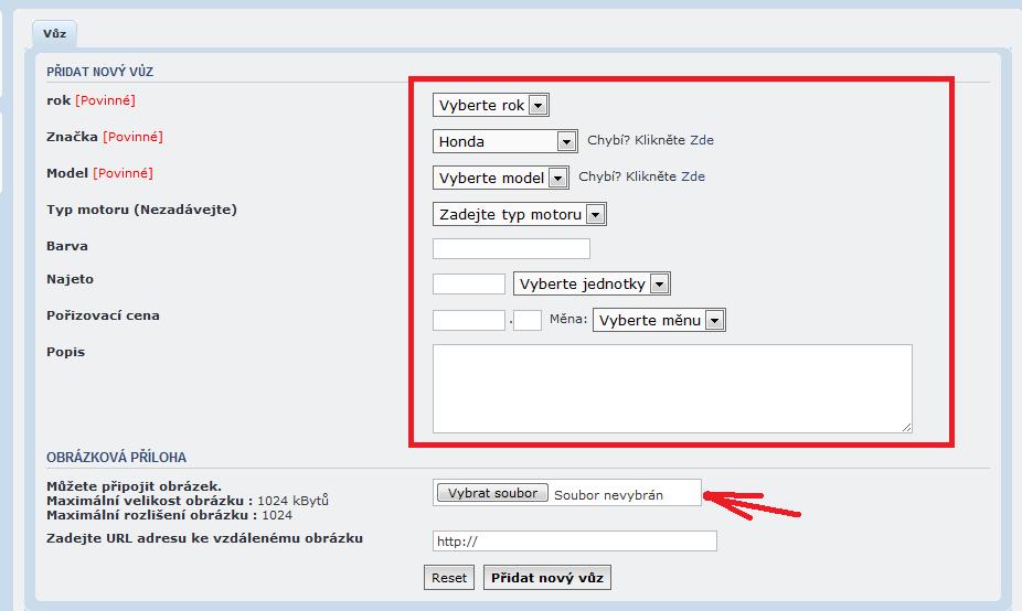 Vyplnit krátký formulář o voze a vložit foto, které chcete jako hlavní