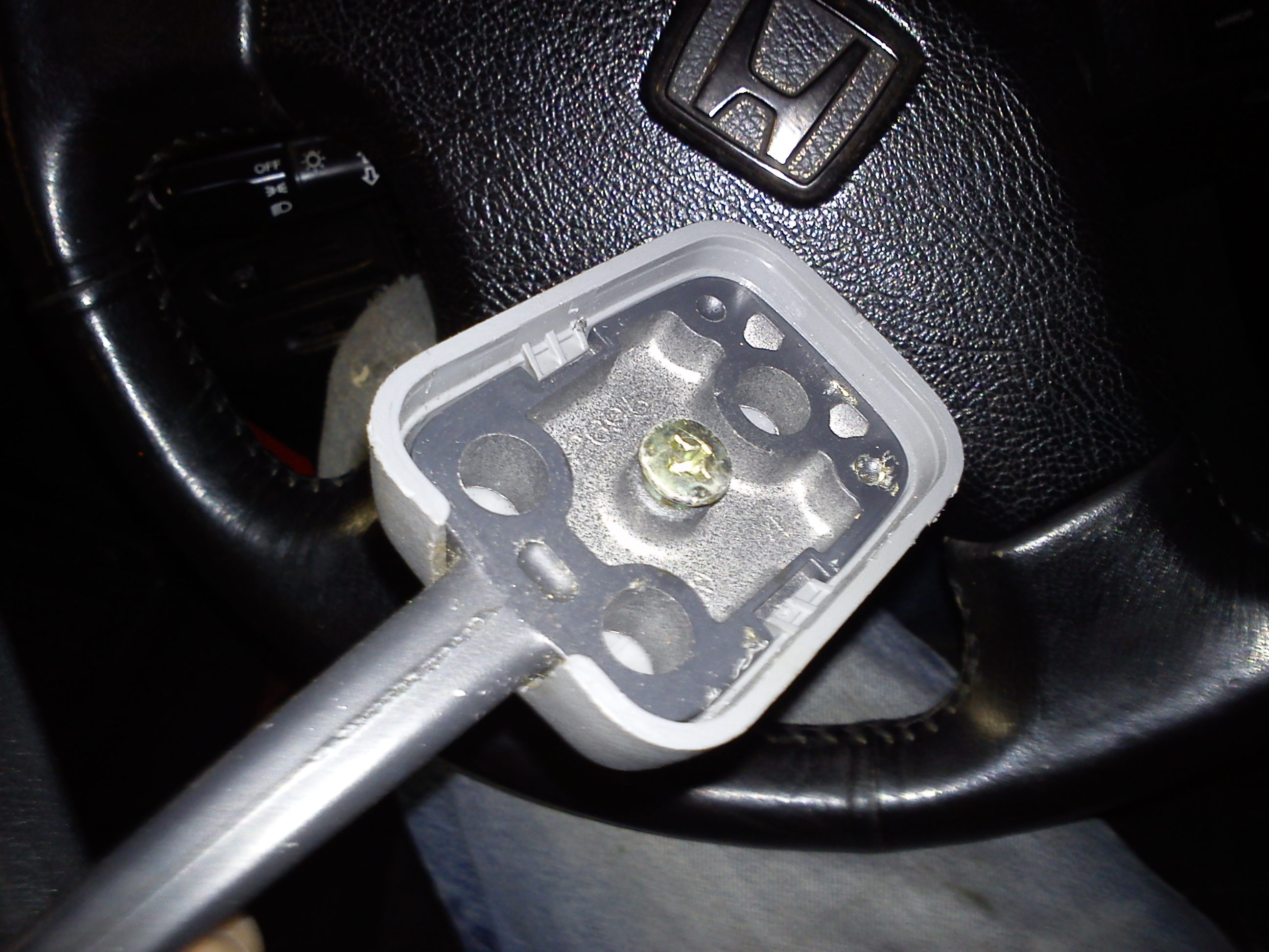 Druhý způsob jak dostat krytku dolů, je použít šroubovák a vsunout ho pod krytku jako je zde na obrázku a opatrně krytku vylomit směrem ven.