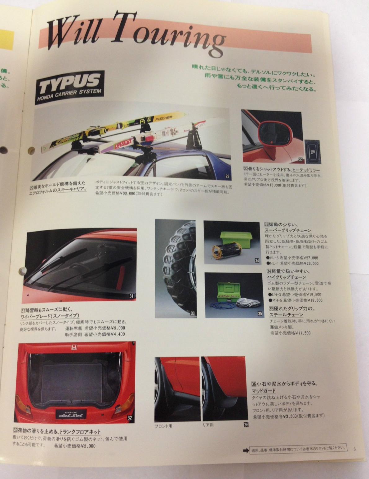Tak mám tady pro vás taky jednu brožurku. Je to katalog originál doplňků pro CRX a pokud někdo umí dobře japonsky, tak si určitě i dobře počtete