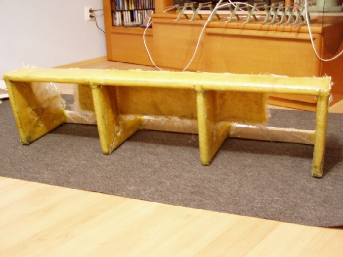 Tie sa potom obdobne vylaminovali postupným lepením laminátových plátov epoxidom.