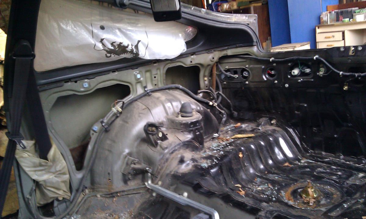 ...Jak už tu psal znalec tohodle auta,je to tak že do něj opravdu dlouhodobě pršelo odnesli to pravé zadní lemy.pravé prahy a pravá část karoserie vzadu..díra u odvodné hadice vody...Abych se přiznal zezačátku byla malá ale pár ran šroubovákem a rozbrus jí přidali