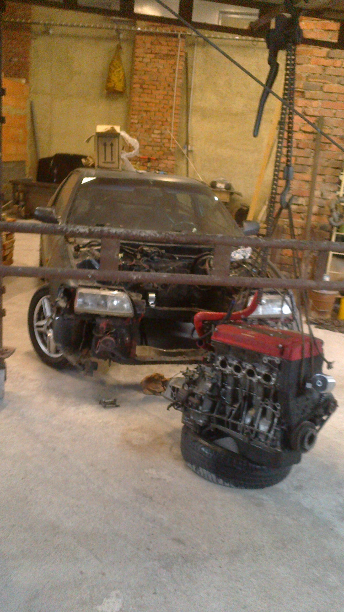 Pomalu se pokračuje, motor dovnitř, nesedí držák na nápravě, špatně jsem vymlátil místo pro altík... motor ven :D. Musí se stejně opravit závity na držáku motoru u rozvodů. Tak dnes aspon nový tlumiče na zadek, promazání brzd.