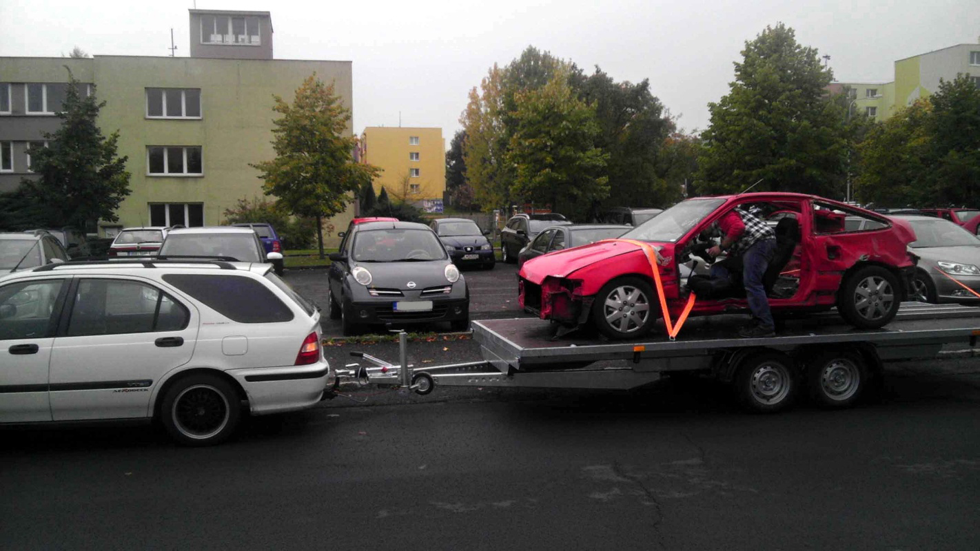 Červená průběžně rozebrána, pak naloženo a odvezeno. Celková délka Civic + přívěs = 11 metrů :oops: