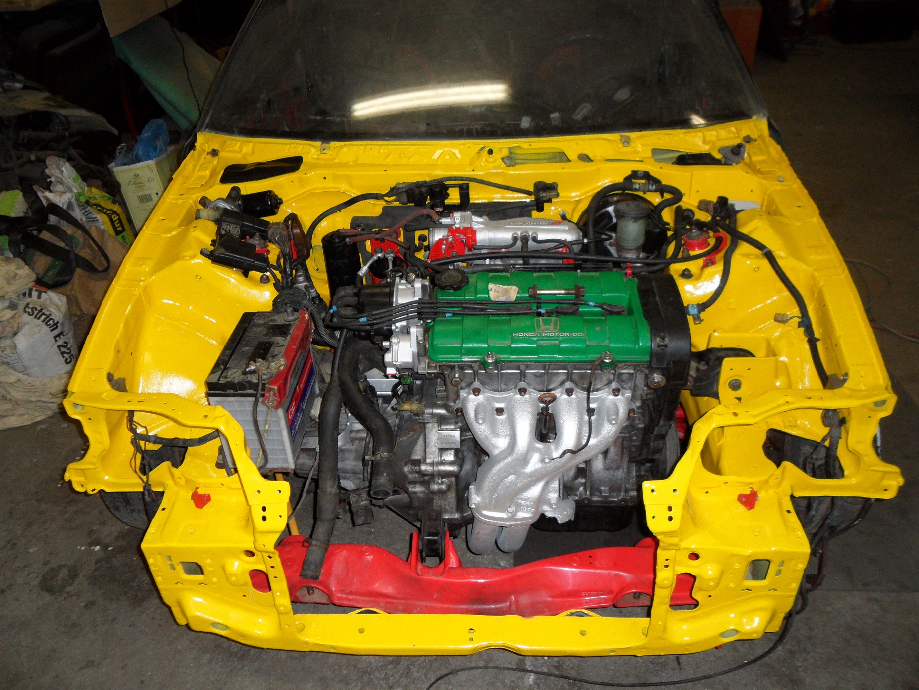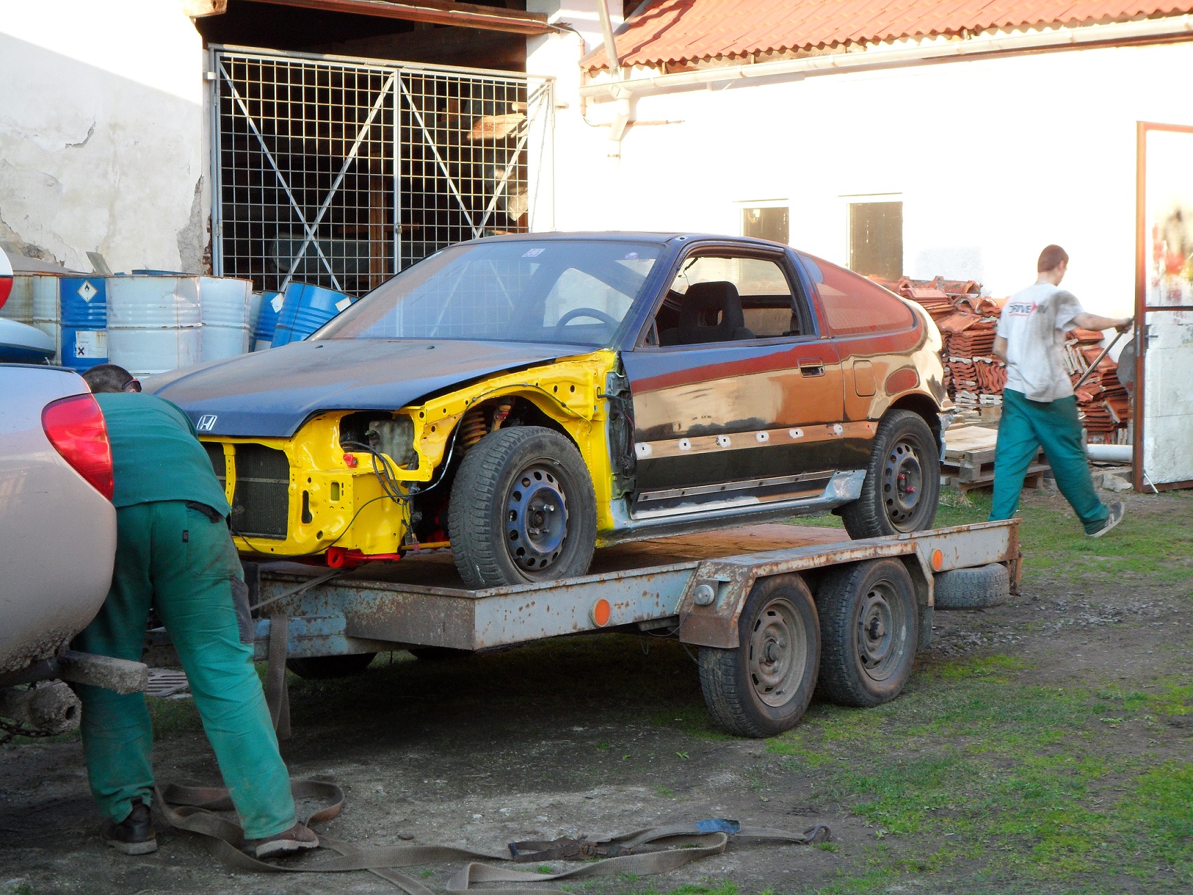 CRXo konečně převezeno z dílny domu, nahodil jsem konečně i zadní nápravu, vyměnil silenty na tyči řazení za energy suspension,které mi daroval skřítek
