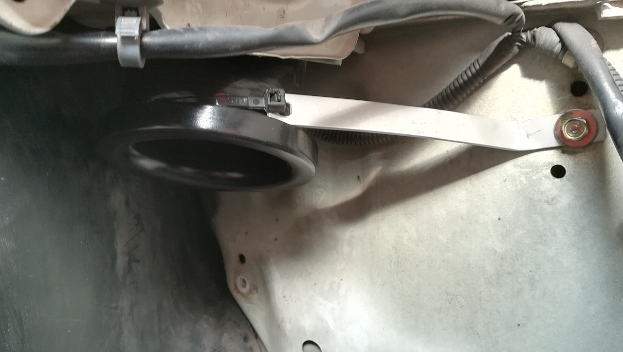Tu přední spodní rozpěru nakonec mám od Wiechers - vede pod svodama. Bál jsem se sice toho, ale zatím jsem nikde spodkem nechytil. Nepůjde to ale skombit s těma činskýma nerez svodama - ty jsou dost nízko. Teď tam mám doupovce a s tím to tam dát šlo, ačkoliv i tak se mi to dotýká. Svody mám v pásce, takže to pazvuky nedělá, ale ideál to taky není.