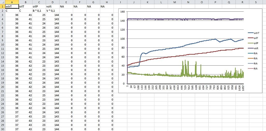 Povedlo se mi celkem rozumně vymyslet datalog na sériovou linku, takže nemusím psát žádný sw pro jeho zpracování. Stačí jen nějaký port sniffer a log z něj uložit s příponou csv. Soubor se pak otevře v excelu jako tabulka, ze který se pak dají dělat grafy, atd.
