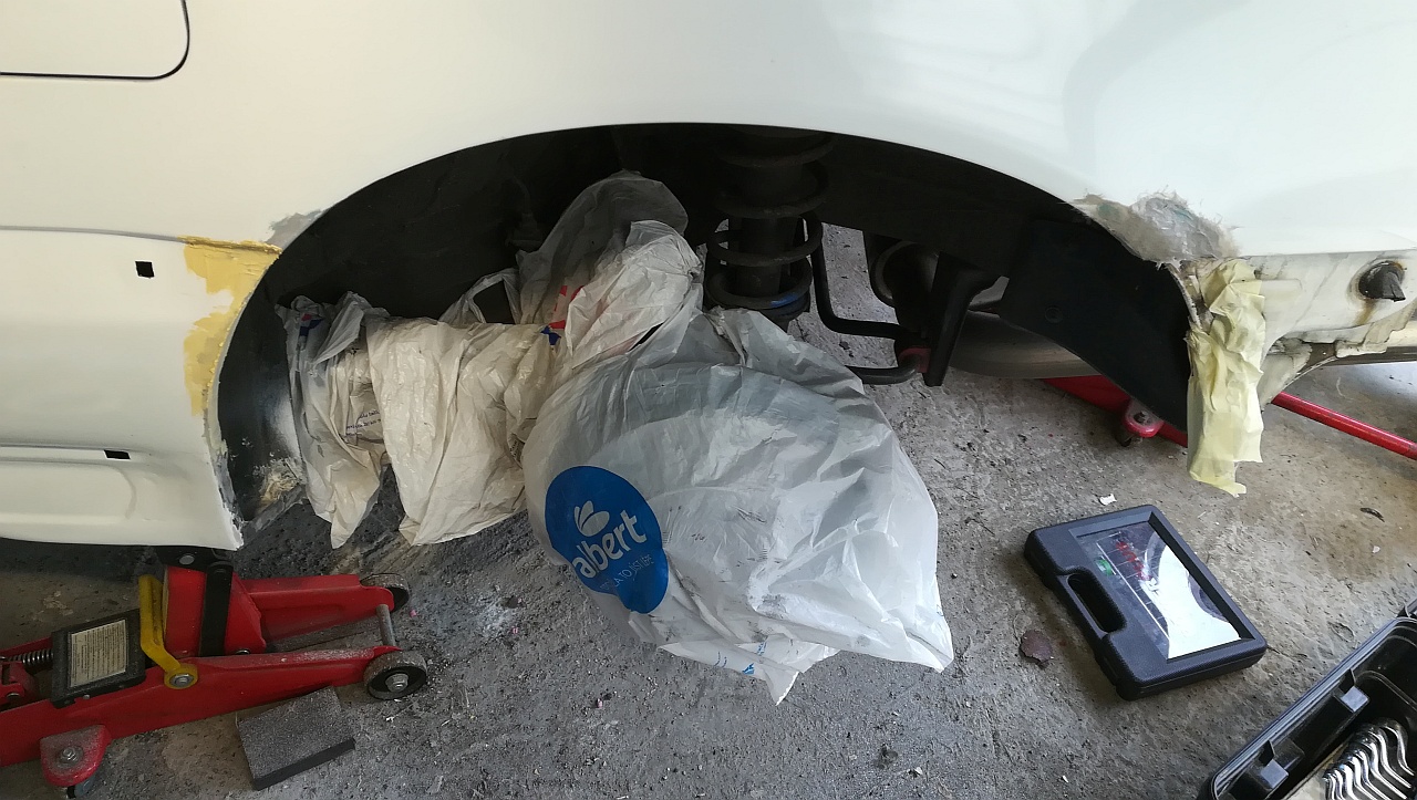 Jelikož teď musím nějakou dobu používat CRX jako daily, tak sem se rozhodl, že alespoń provizorně opravím korozi zadního lemu na řidičově straně, aby se to nezačalo zhoršovat. Zároveň sem auto z velký části odstrojil, abych se podíval, jestli někde není něco dalšího, co sem přehlídnul při koupi.