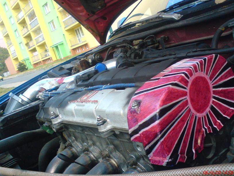 Úpravy: Generálka motoru (nyní cca 6tis. km), keramické svody 4-1, otevřený výfuk (3A RACING), ponechán rezonátor, katalyzátor spálen při zkoušení nové ECU. Odlehčená řemenice cca 250g, odlehčený setrvák o 3,5kg, spojka EXEDY ORGANIC, otevřené sání s K&N filtrem, na 2x srovnaná hlava. ECU jsme prodloužili dobu vstřikování a posunuli omezovač na 8100ot/m, což je maximum pro Z5-tku, pokud jí chceme uchovat pohromadě (pak jedině tvrdší pružinky, aby se ventily stíhaly vracet). Výkon odhadovat nebudu, chystám se v nejbližší době na Zbraslav na brzdu. Cokoliv nad 126bhp beru :0)