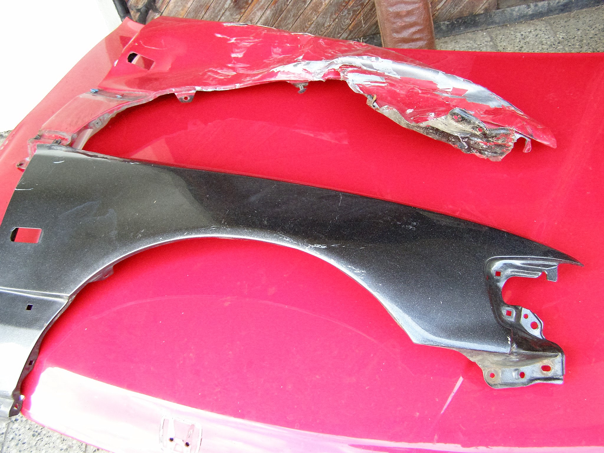 Tak se trochu pochlubím jak pokračuji v odstraňování následků nehody v Praze.Tak nárazník je na opravě odborník říkal,že to nebude žádný problém(že viděl horší).Jsem za to moc rád.Zatím vyklepávám části(držák nárazníku se podařil srovnat,Malé nerovnosti na PP blatníku taky a dal jsem se do opravy kapoty).Musel jsem vyříznout části výztuhy,abych mohl vyklepávat,krajní část kapoty byla zlomena do pravého ůhlu směrem dolů.Chci aby tam byla co nejmenší vrstva tmelu.