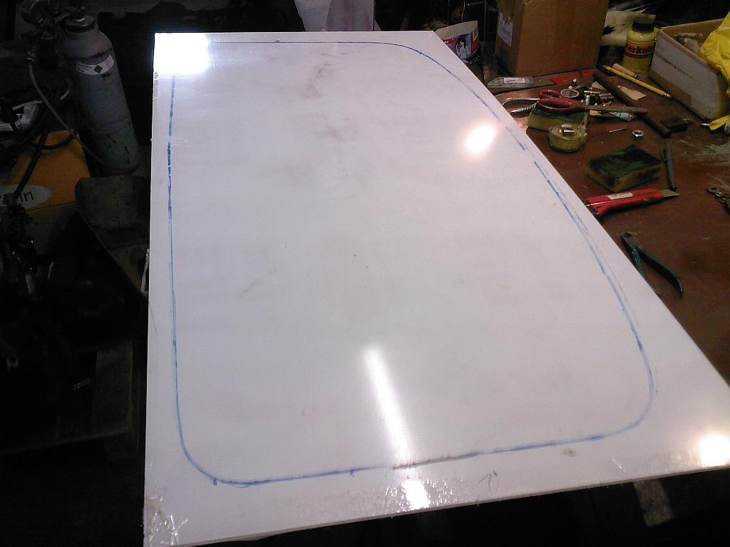 Od pondělí se mi doma válí dvě plný makrolonový desky, takže sem se dneska pustil do výroby střešního okna. Podařilo se mi upravit těsnění z původního šíbru, tak že půjde použít i na střešním okně a krásně překryje spoj střecha okno, takže by to mohlo i celkem solidně vypadat.