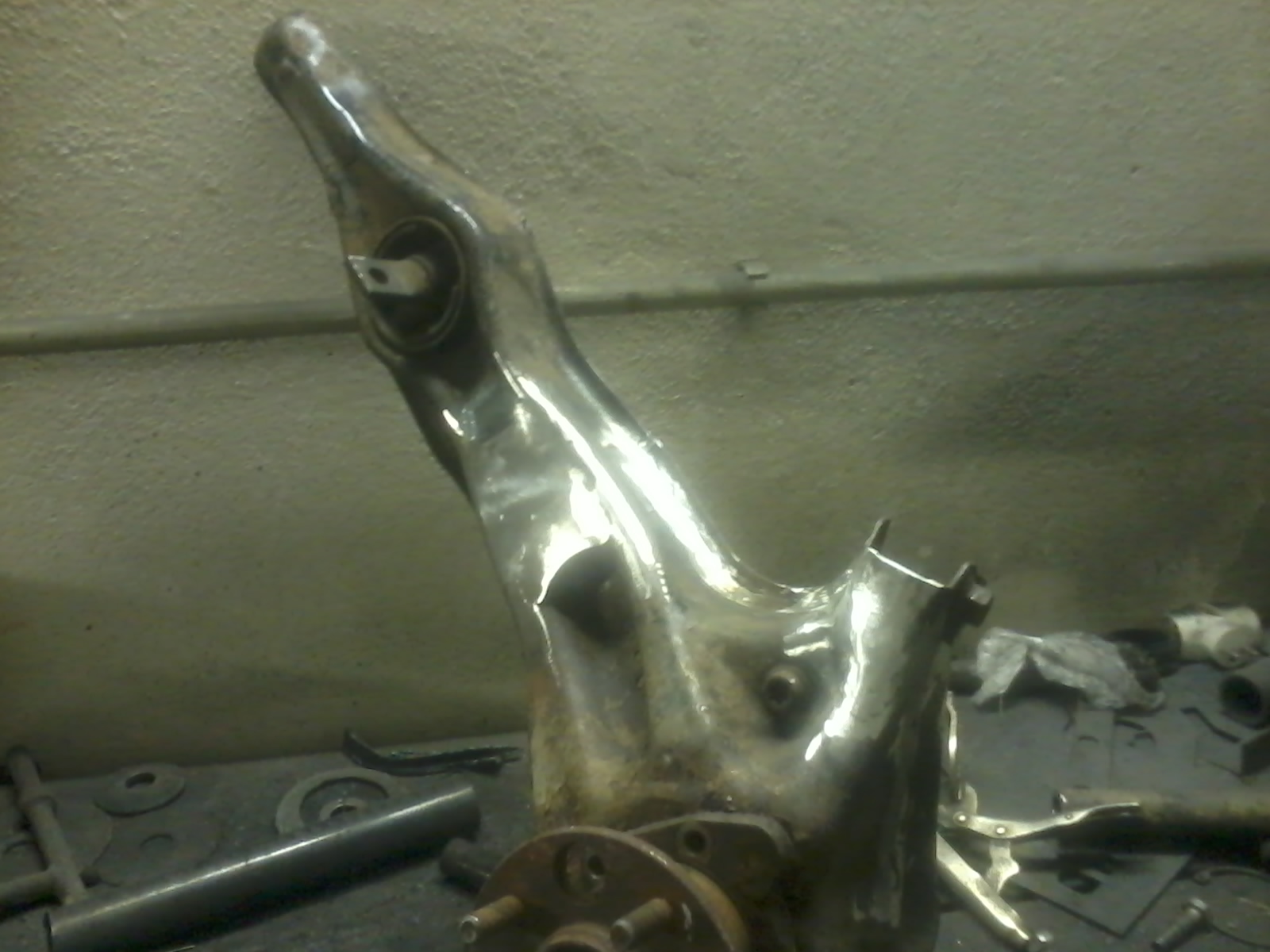 takjsem dnes za pomoci dobrych kamaradu jmenovite tondy rozbrusky , martina kladiva a tomase autogenu poladil zadni ramena tak aby se tam vesli brzdice na kotoucove brzdy. pristi tyden necham vyrobit drzaky brzdicu a zacnu tam davat zadni napravnici a diferak