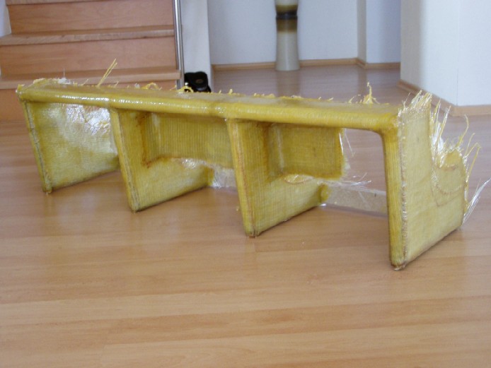 Tie sa potom obdobne vylaminovali postupným lepením laminátových plátov epoxidom.
