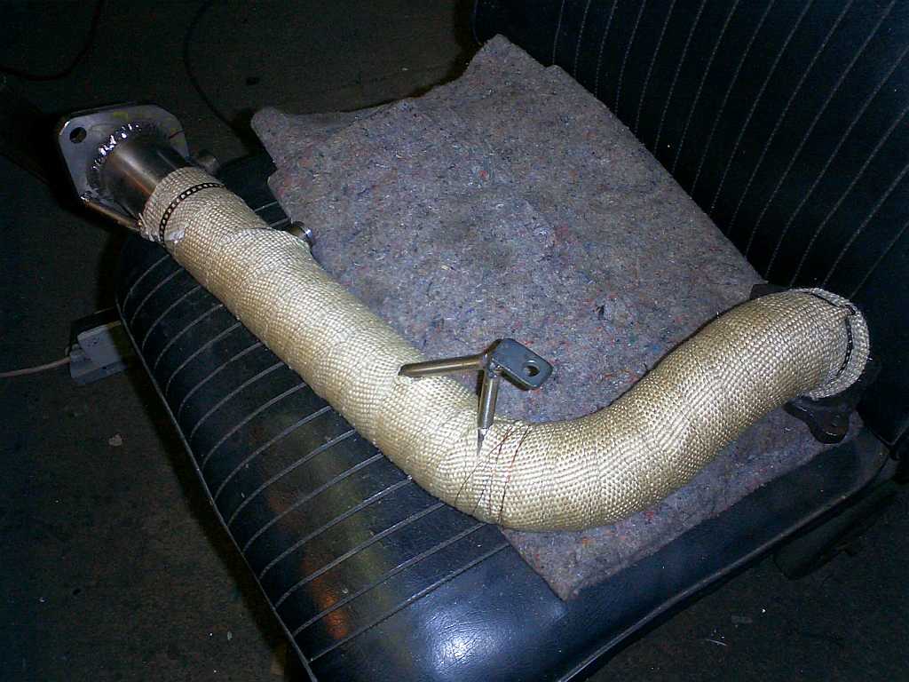 Přírubu a jedno koleno sem použil z původní downpipe, kterou sem koupil s turbem. Musel sem ten celek sice komplet rozřezat a převařit, aby to páslo, ale nakonec se to dalo použít. Zbytek downpipe sem pak svařil z nových trubek. Za přírubou by se mi víc líbil trochu pozvolnější ohyb dolů, ale kvůli nedostatku místa to už líp udělat nešlo.
