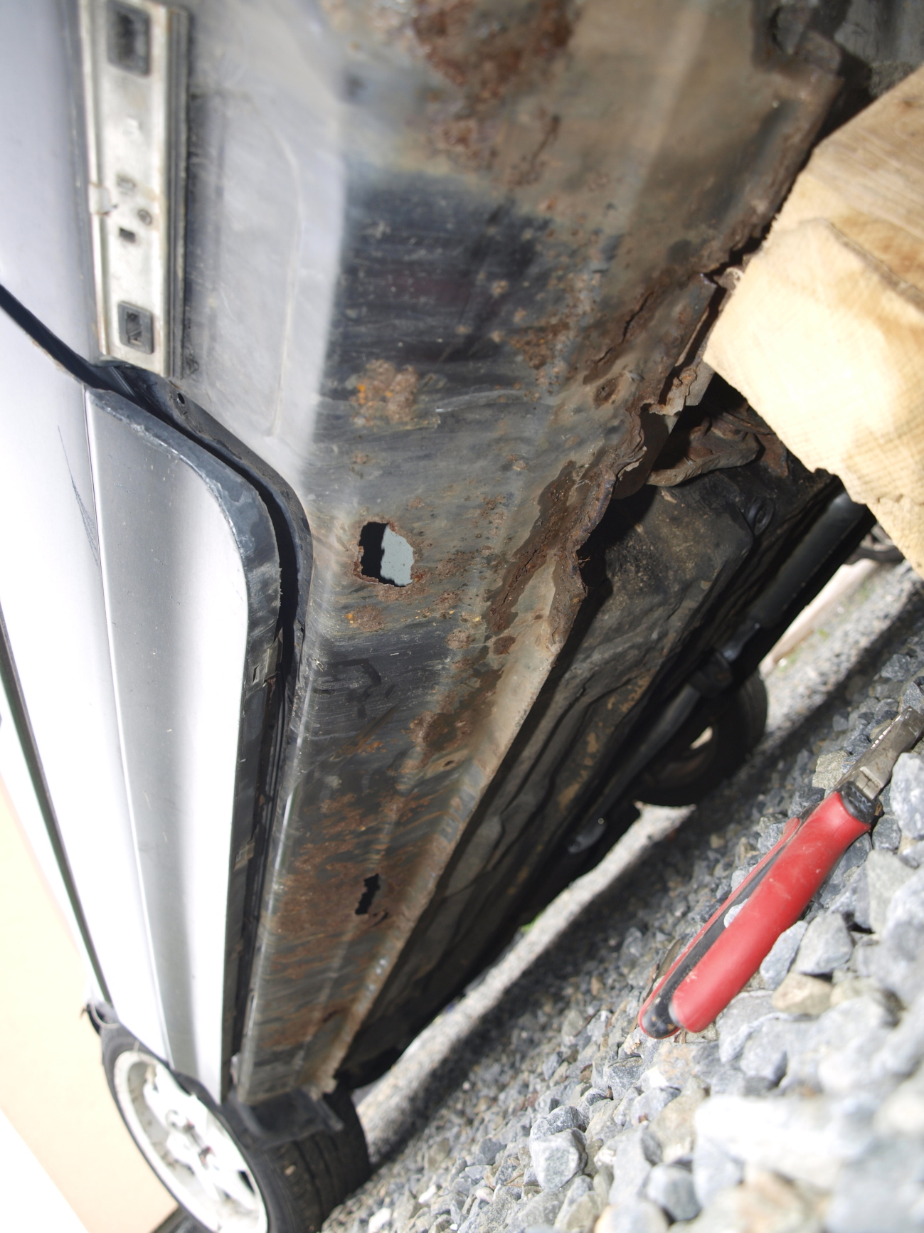 Dnešní svátek práce jsem pojal pracovně a dělal na svojí holce *crx* . Moc se toho nestihlo, ale udělalo se pár důležitých věcí. Zprovoznil jsem stahovačky, musely se napájet nové relátka, podle těch starých a ještě jsem prodloužil kabliky, ať se s tím lépe pracuje. Potom se přetěsnil nový středový a koncový díl výfuku, takže už neprdí. Na středovém dílu se musely převařit úchyty silentů. Dočasně jsem měl půjčeného supersprinta od Magotha, velké díky, super ochotný člověk, víc takových! Ještě zbývá navařit starou koncovku, teď tam jsou takové srandovní trubičky :D No a konečně jsem se podíval na prahy, jak vypadají můžete vidět na fotkách. Není to katastrofa, ale z plechu už je docela papír. Levý je na tom o něco hůř než pravý. Zítra to jedu nechat vařit + přijdou nové kotouče a desky na všechny kola. Momentální brzdy už jsou dost slabé, hlavně je to poznat když jedu se spolujezdcem.