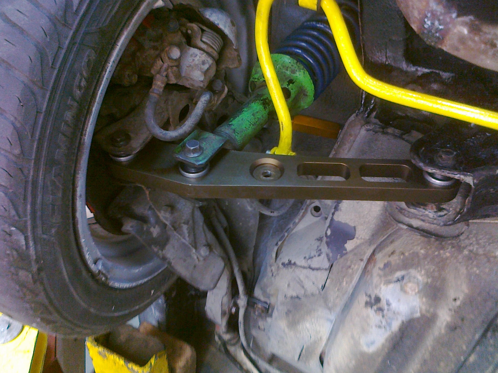 Repas zadní nápravy. Ramena D2 racing na místě. ty horní stavitelné taky a zbytek silentbloku vyměněn za nové včetně puků.