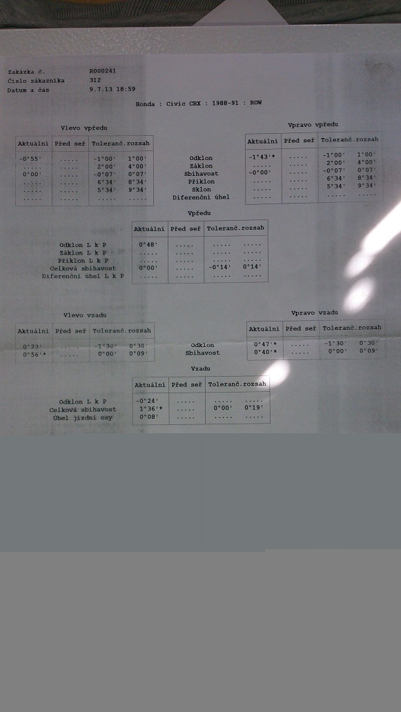 podvozek ošetřen gumoasfaltem a dutiny vystřikany po 4 letech tvrdé dřiny bylo s crx ujetou 2tis km je tu rok 2010 na crx se udajně prastalo pracovat a 4 roky stála až do roku 2014 kdy ji přivezl zachrance minor a dostala se ke mě