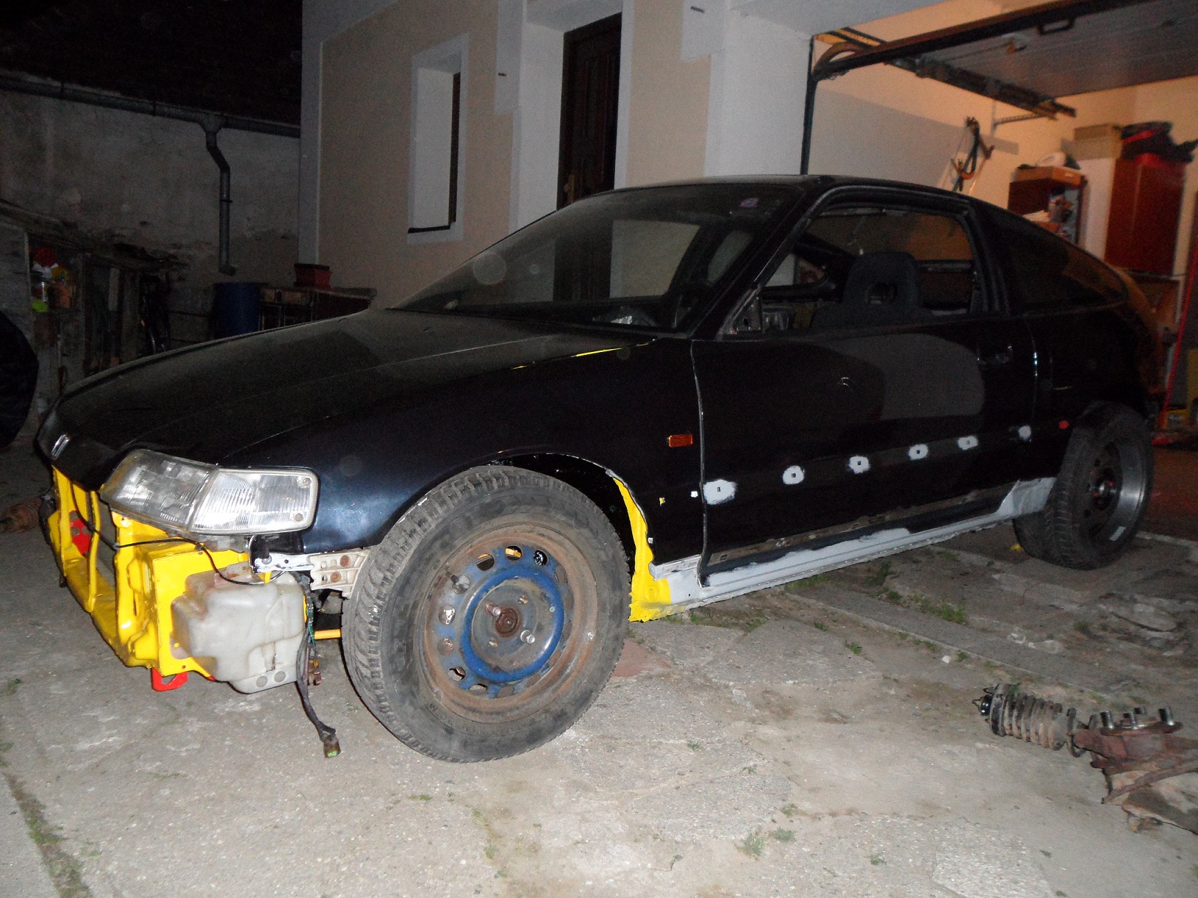 CRXo konečně převezeno z dílny domu, nahodil jsem konečně i zadní nápravu, vyměnil silenty na tyči řazení za energy suspension,které mi daroval skřítek