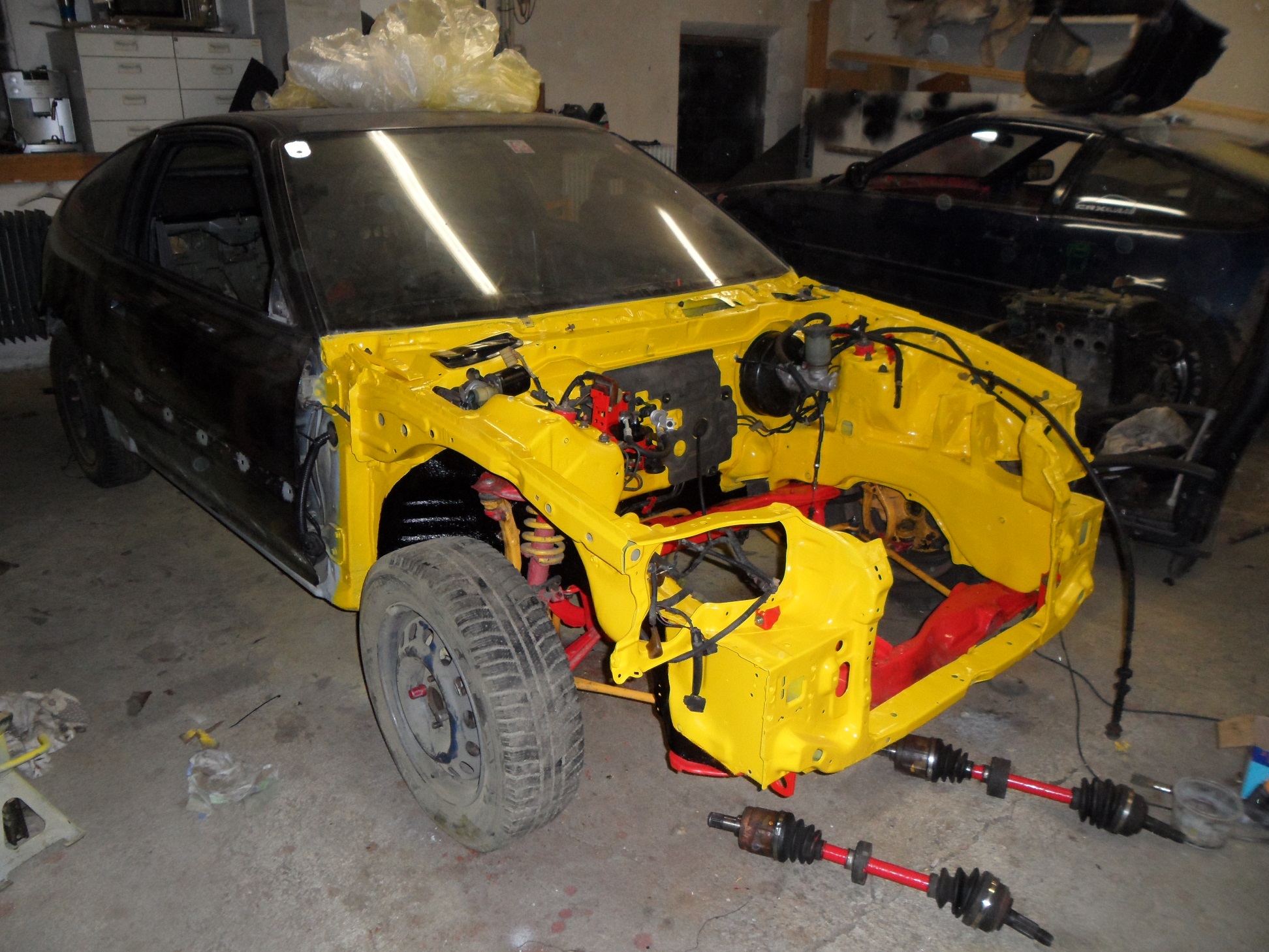 CRXo konečně převezeno z dílny domu, nahodil jsem konečně i zadní nápravu, vyměnil silenty na tyči řazení za energy suspension,které mi daroval skřítek