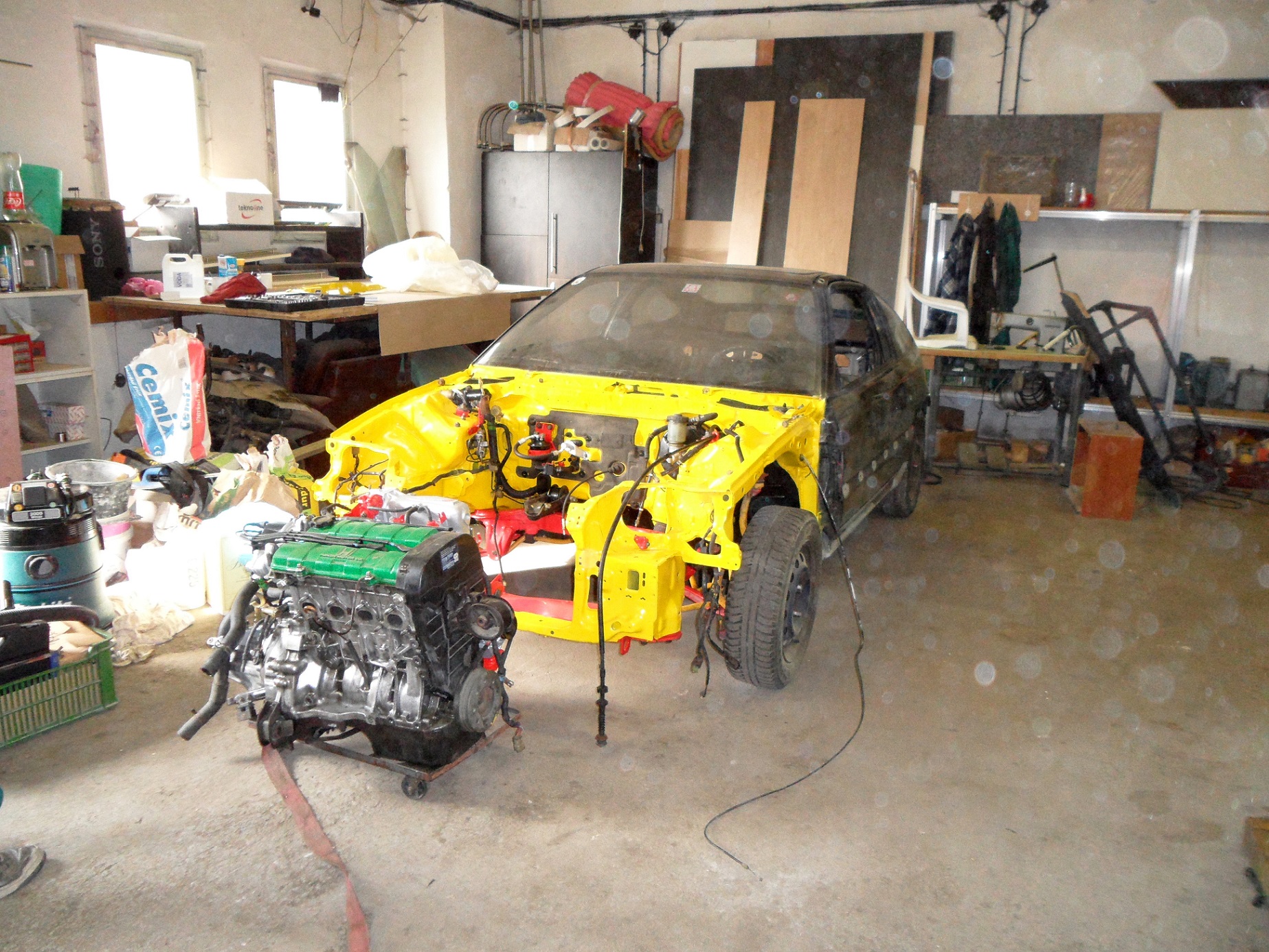 CRXo konečně převezeno z dílny domu, nahodil jsem konečně i zadní nápravu, vyměnil silenty na tyči řazení za energy suspension,které mi daroval skřítek