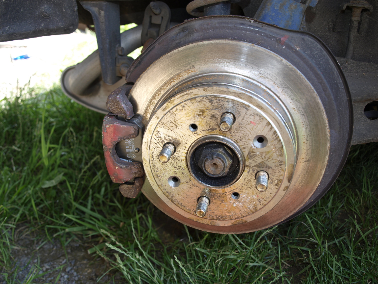 Dále jsou na autě cca 3 týdny nové kotouče Bosch, destičky Nipparts. Všechny brzdy mají vyměněné pístky a na pravém zadním kole je nově zrepasovaný třmen.