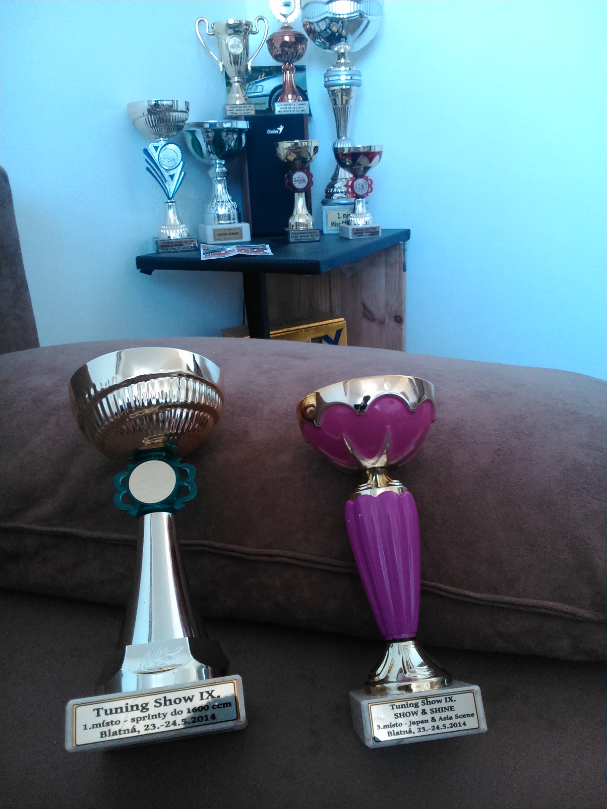 Jinak tento víkend proběhl Tuning Blatná a povedlo se vylepšit čas a něco odvezt *pohladit* 1.místo Sprint 400m čas 14:703 a 3místo Show a Shine JApan Asia *dance* Tak zase cero udělalo radost :-) bohužel při sprintu mi vyzkočila pozička a jak držela na dratu a vlala tak si hezky parkarat sekla do blatníku :roll: *unava* takže se bude muset nechat stříknout *cry*