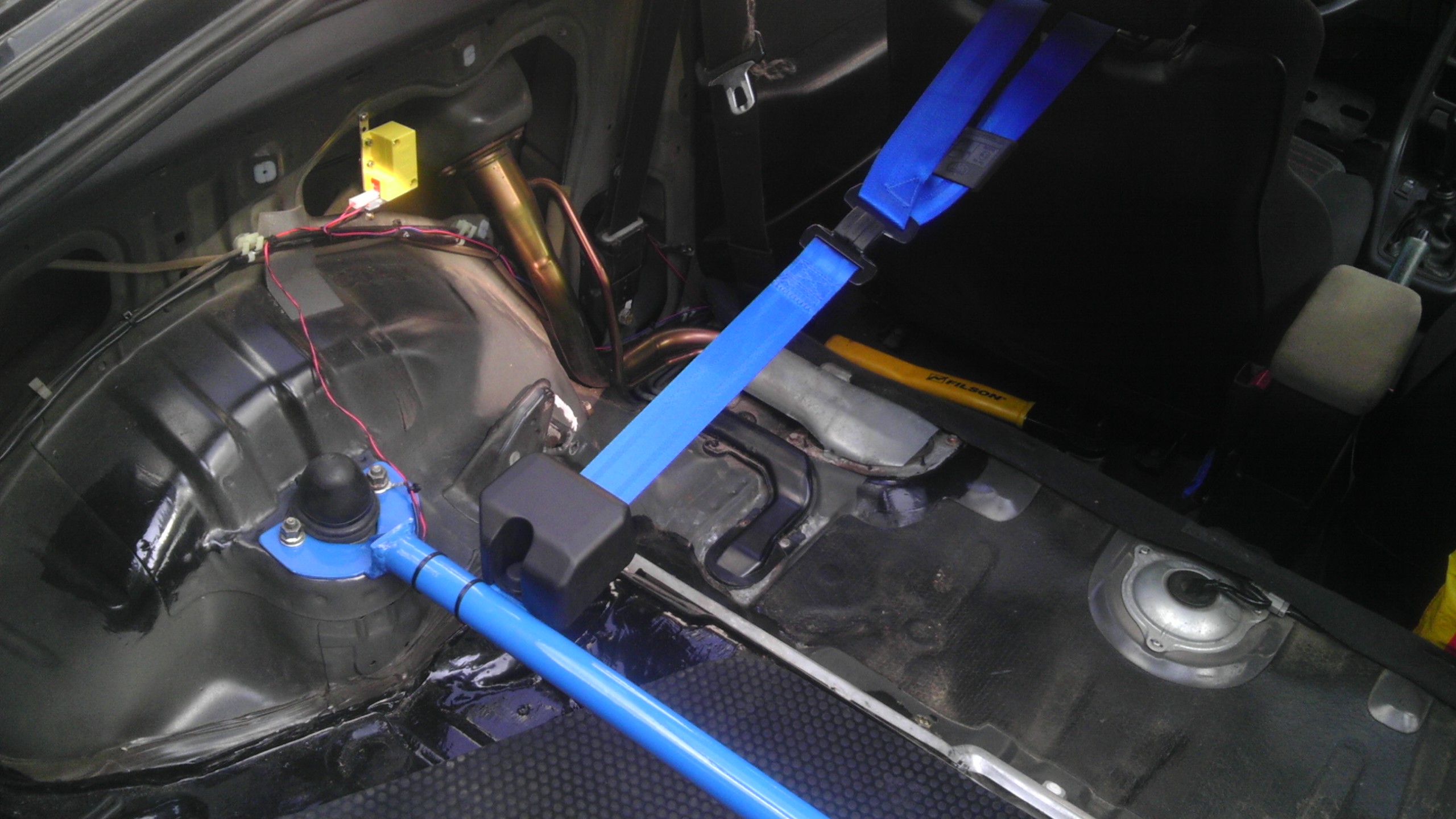 Jinak jsem k zadní rozpěře přichytil 3.bod od pásů. Vím, že to není 100% řešení, ale stále se mi zdá o hodně lepší než použití originálních otvorů s nesmyslnými úhly pásů.