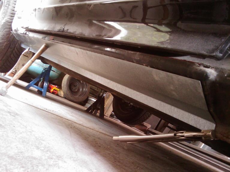 Antikorozní ochrana lemů, čela, prahů + na tom zlatý alkyton