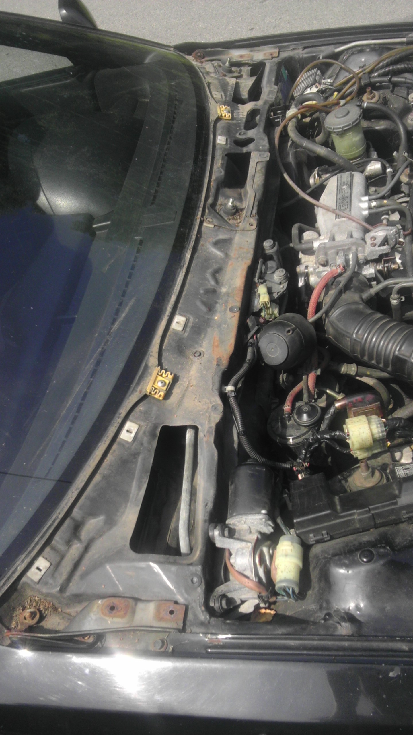 Dále jsme zakoupil průduchy topení do palubovky, ty moje byly nefunkční. Nalakoval jsem stříbrný rámeček poziček na černo. Vyměnil jsem přední blinkr v nárazníku, už mám oba stejné. Opravil jsem držák vzpěry kapoty. Celkově na auto nebyl moc čas a nic jsme na něm neudělal.
