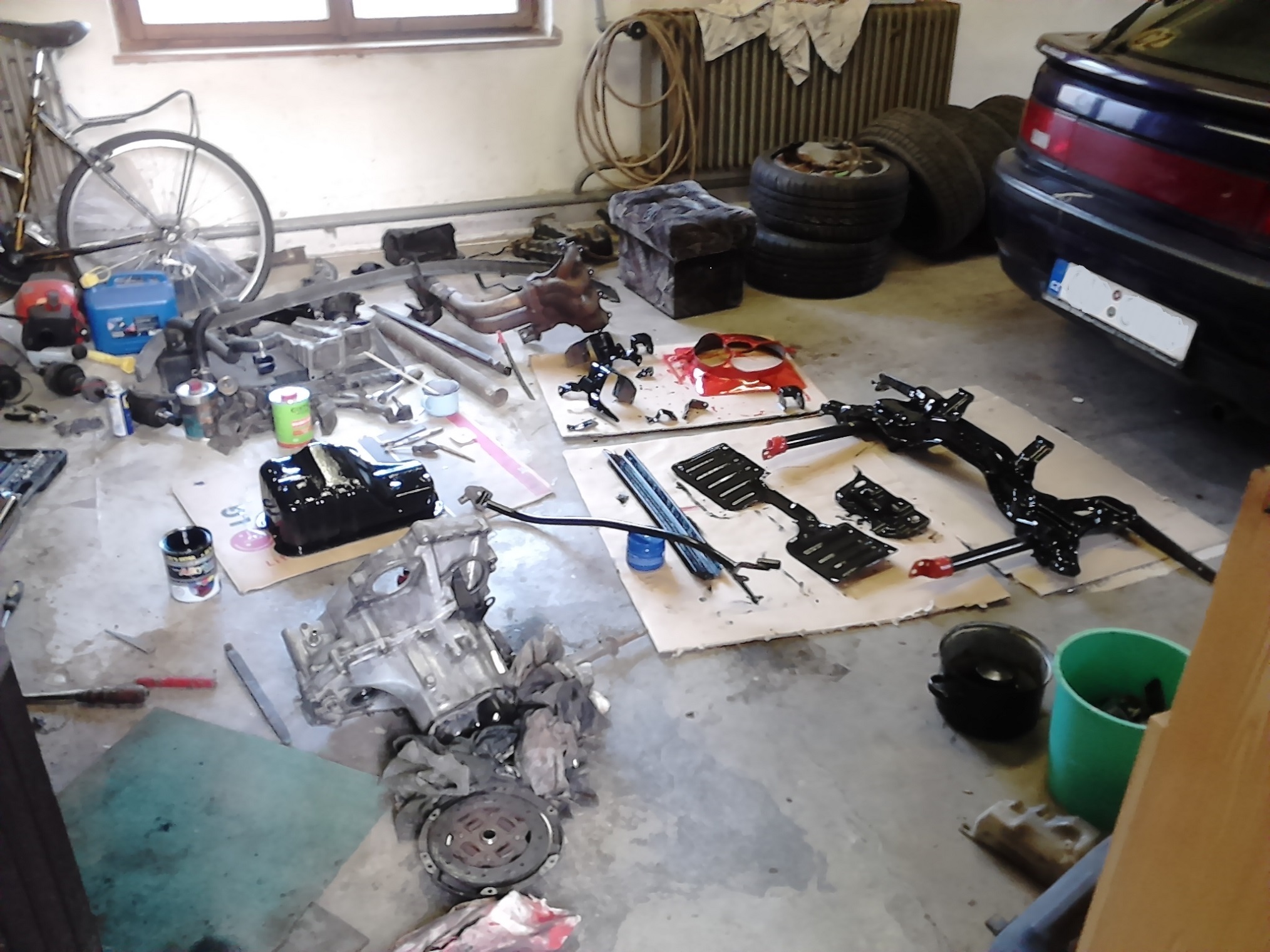 Čekání na díly využívám broušením všeho sundanýho a natřením. A hlavně očištěním toho všude nalepenýho šmiru.