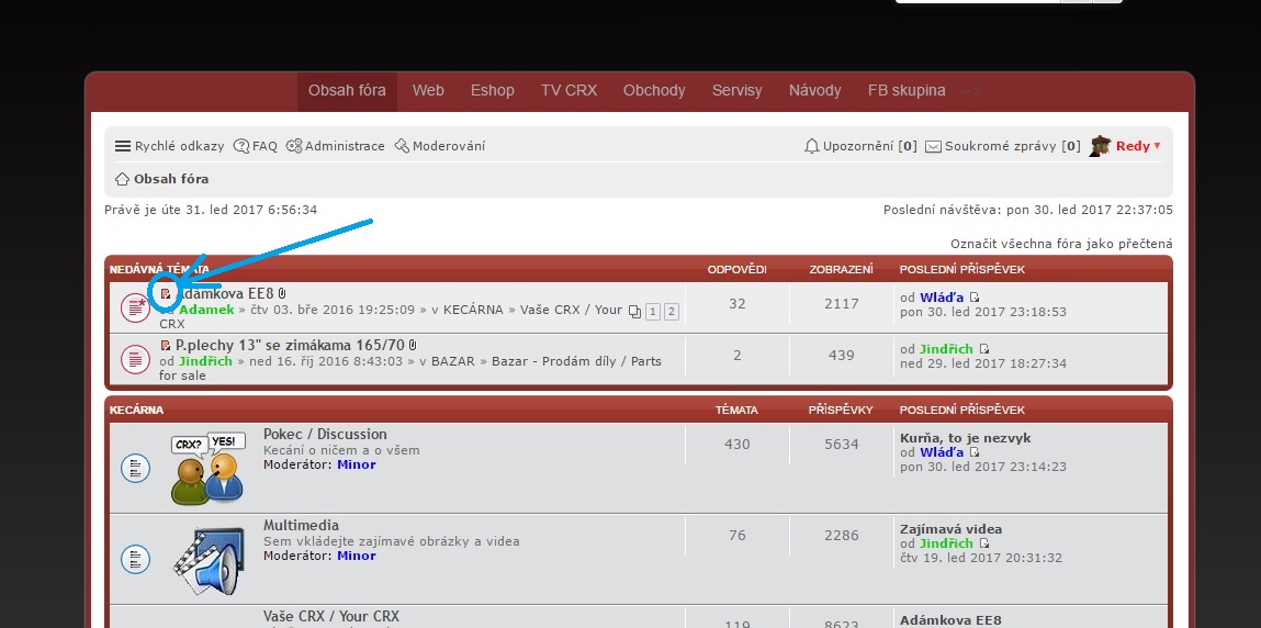 plus pár doplňků jako nejnovější příspěvky, ale třeba tahle funkce je i tu vlevo nahoře "Rychlé odkazy" - "Nepřečtené příspěvky". K tomu jsem teď nasadil rozšíření, které zobrazuje nepřečtená témata od poslední návštěvy nahoře na hlavní stránce fora (pokud tam nic nevidíte, znamená to, že máte vše přečtené