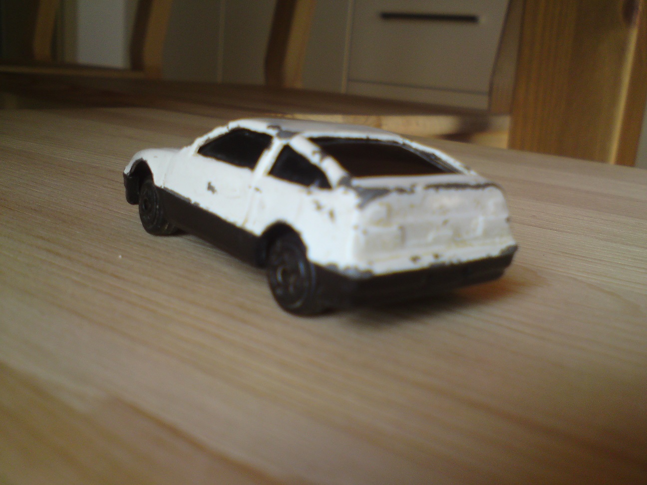 Jednou si tak přišel syn,ať si jdu s ním hrát s autama a přitom si jezdil s jedním po stole. Musel jsem ho odbýt,ale pak čučím na autko,co měl v ruce a nevěřím svým očím! Autko velikosti angličáka,otřískané,podřené,pomačkané sloupky,ale je to CRX! :shock: