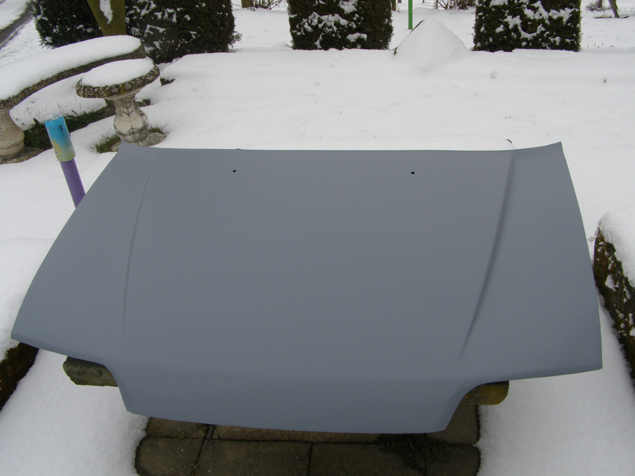 Tak kapota může jít opět k Adámkovi.Napřed k lakýrníkovi.Dnes jsem dokončil práci na kapotě,ještě trochu práce u lakýrníka a může jít zase na Adamkového Vteca.I když i v tom tmavošedém dvousložkovém plniči by mohla sloužit na autě.