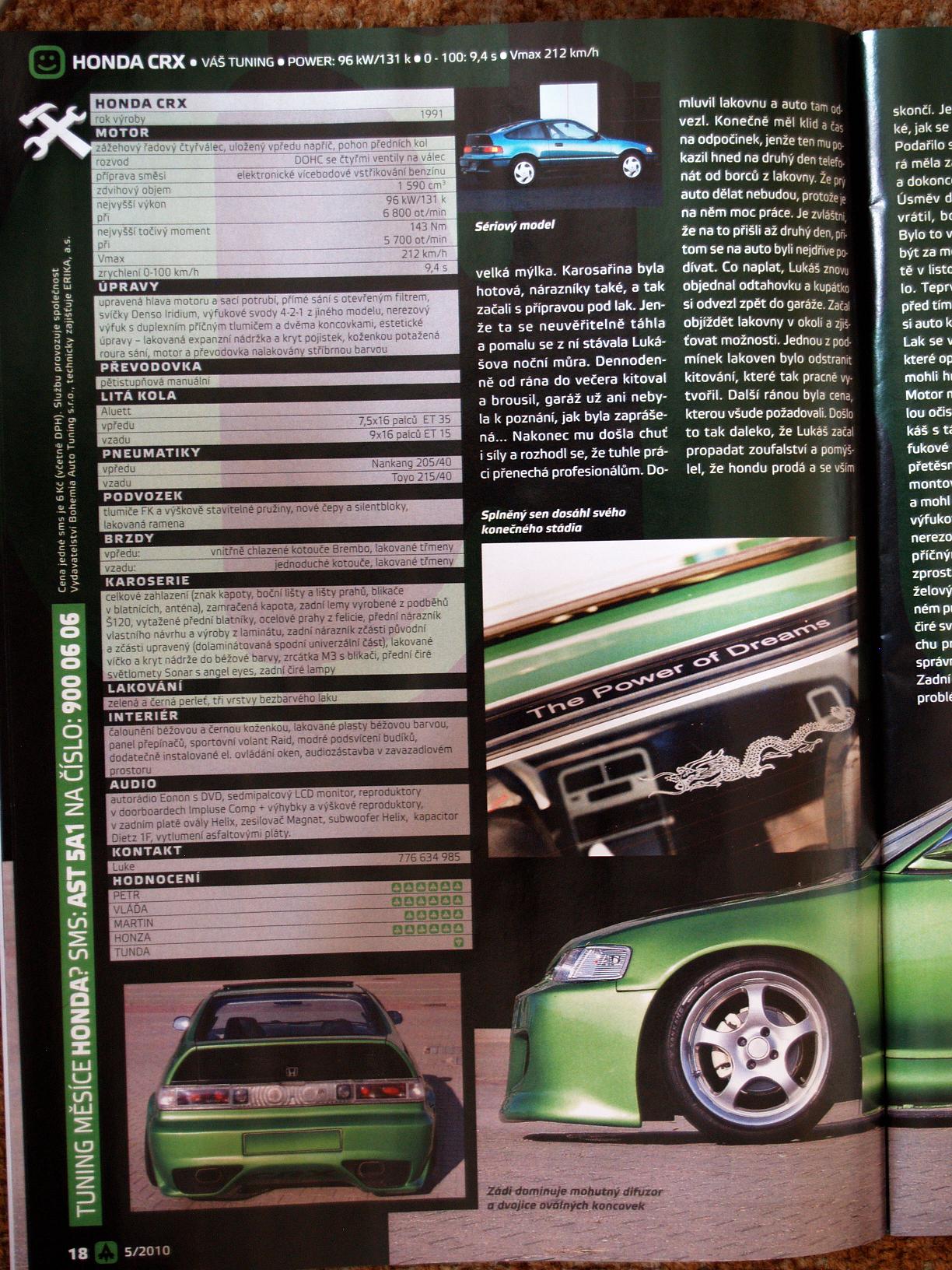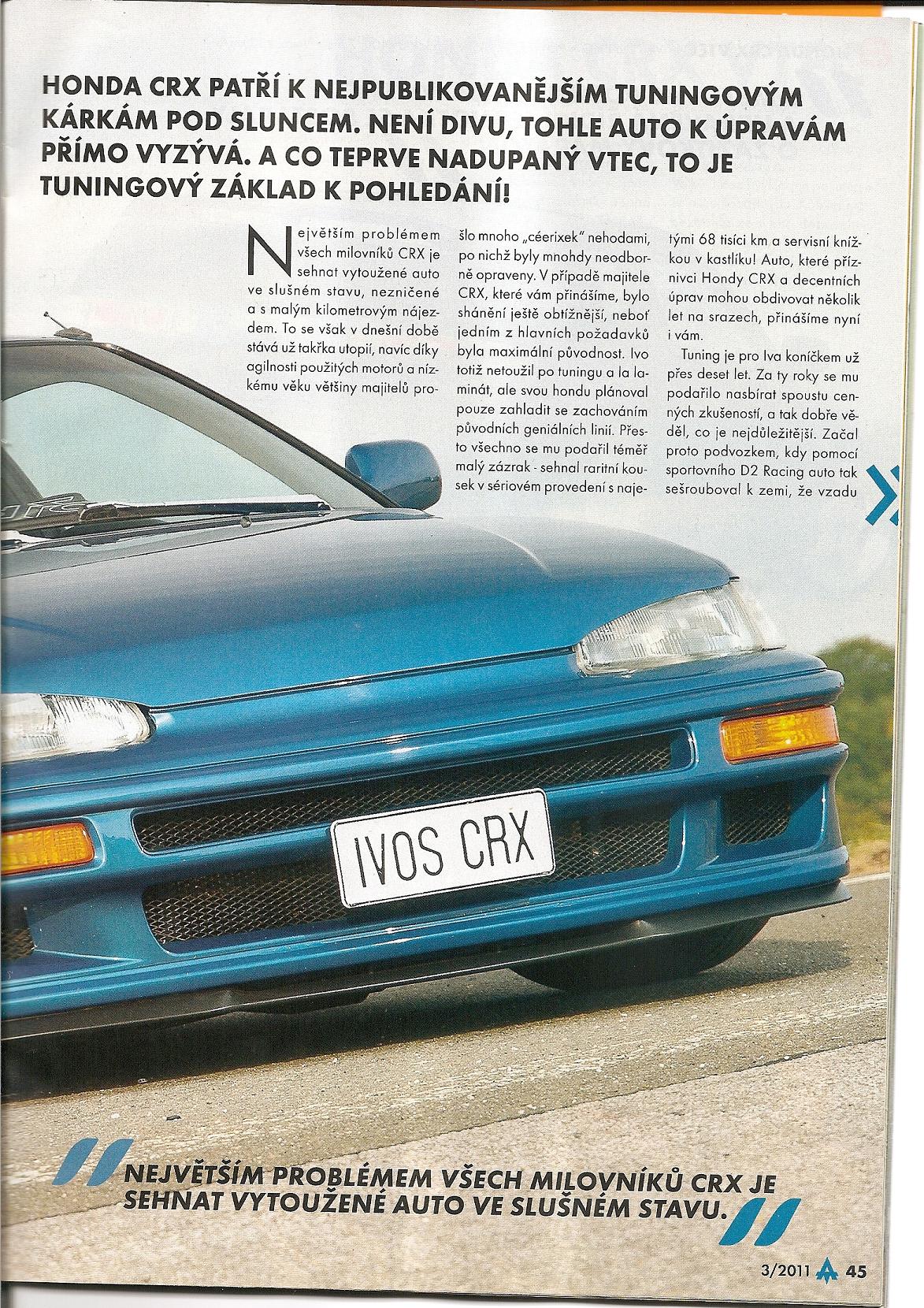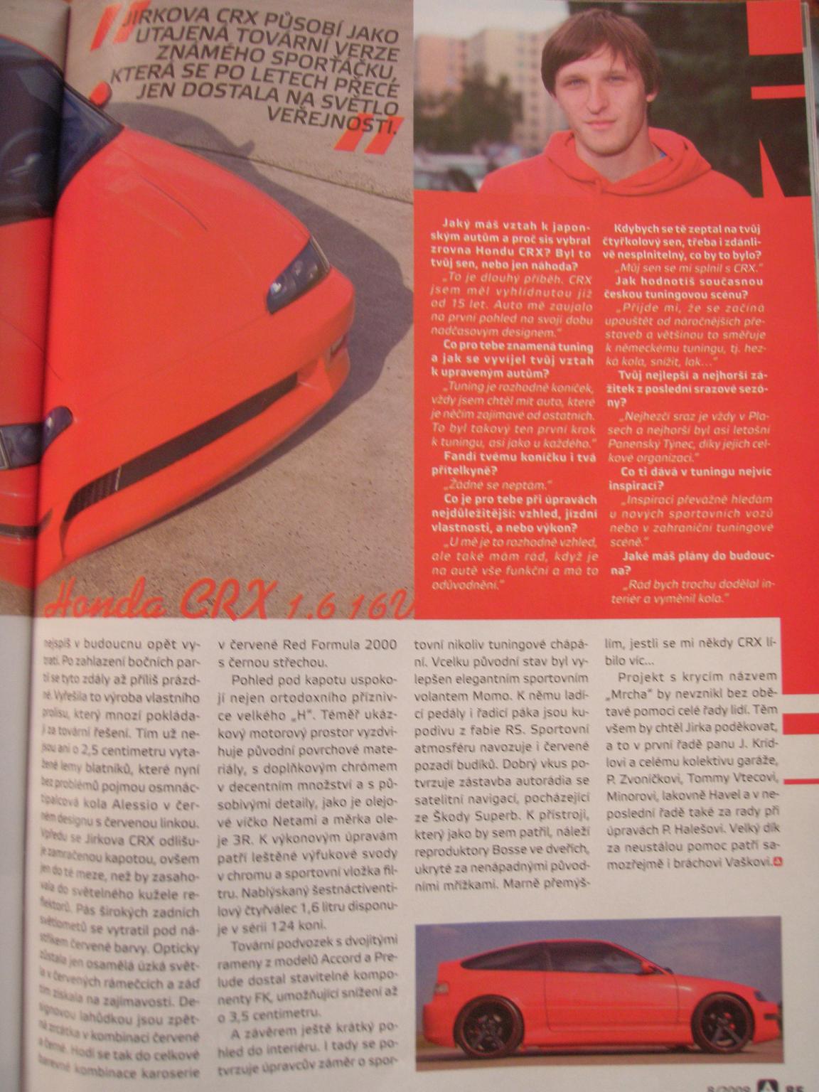 A máme tu další obsazení časopisu *jizda* perfektní počtení od našeho letitého crxaře, děkujeme i za vyzdvihnutí crx klubu *relax* *pratele* *dobrety* ať žije další parádní prezentace našeho kupátka! *drinks*