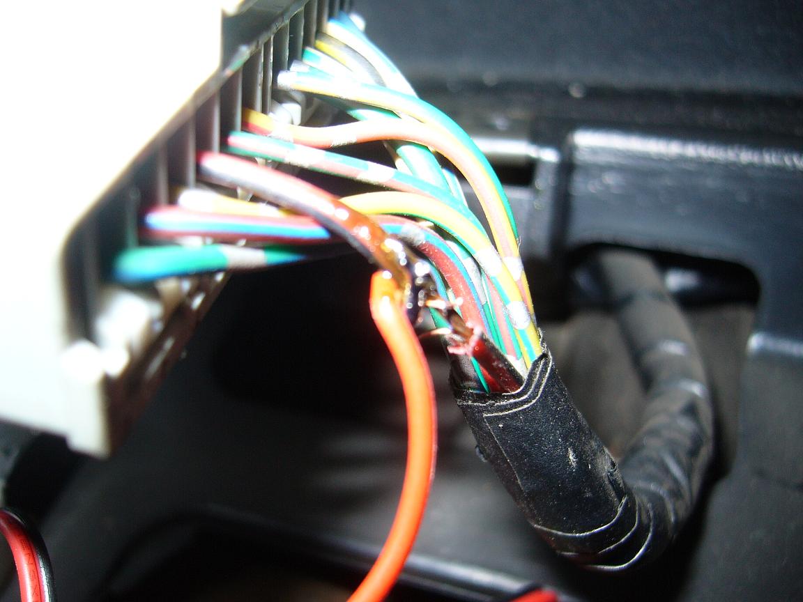 ...Pak vemte izolovací pásku a dobře to zalepte, aby se to nevyzkratovalo. Ten černý drát s červeným pruhem (-) odizolujte v délce cca 5mm připojte v autě někde na kostu (ke karoserii auta) já povolil šroub, který držel výztuhu pod volantem a přitáhl jsem to pod něj. Ale pozor ať to má dobrý kontakt, pokud tam bude vrstva barvy, tak to asi nebude mít kontakt, v místě kde jsem to připojoval já nebylo nalakováno, takže OK. Pak tam máme stabilizér (údajně to má snad fungovat jako nějaký chladič) tak jsem to přitáhl pod druhý šroub, který držel výztuhu pod volantem...