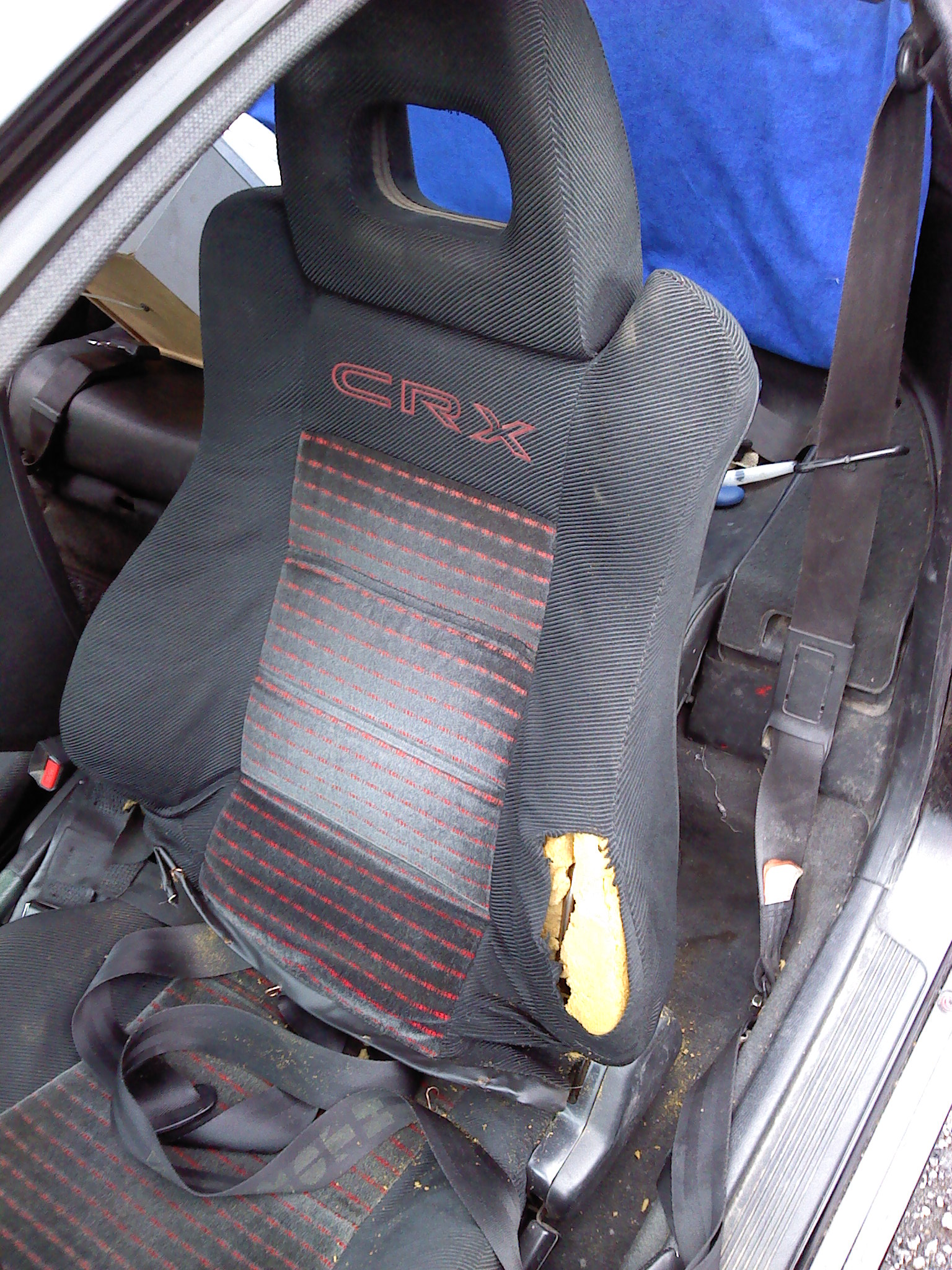 vzhledem k tomu,že většina crx a c4g trpí timhle jevem (neboli roztrhaná bočnice na sedačkách) tak se to většinou řeší záplatou nebo kdo má peníze tak přečalouněním.Ani jedna z uvedených praktik se mi nelíbila a tak jsem se pustil do výměny potahu.