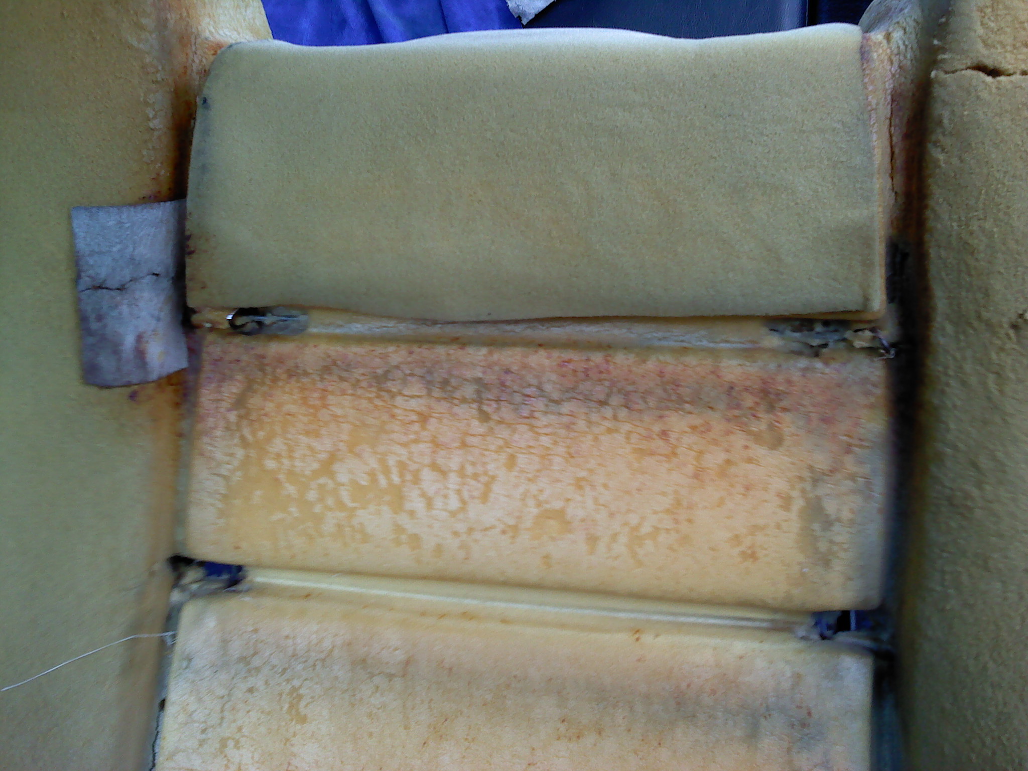 8, nyní můžeme vyndat opěrku,povytáhneme si potah co nejvíce aby jsme mohli na díru ze zadní strany sedačky (viz fotka),tam stačí z boku zmáčknout na plastové úchyty bez větší síly a plastová objímka vyskočí,to samé uděláte na druhém kousku a nyní můžete bezpečně a bezproblémů sundat potah...doporučuji přeluxovat molitan na sedačce ať si tam neuděláte ještě více nepořádku než se vám doteď povedlo