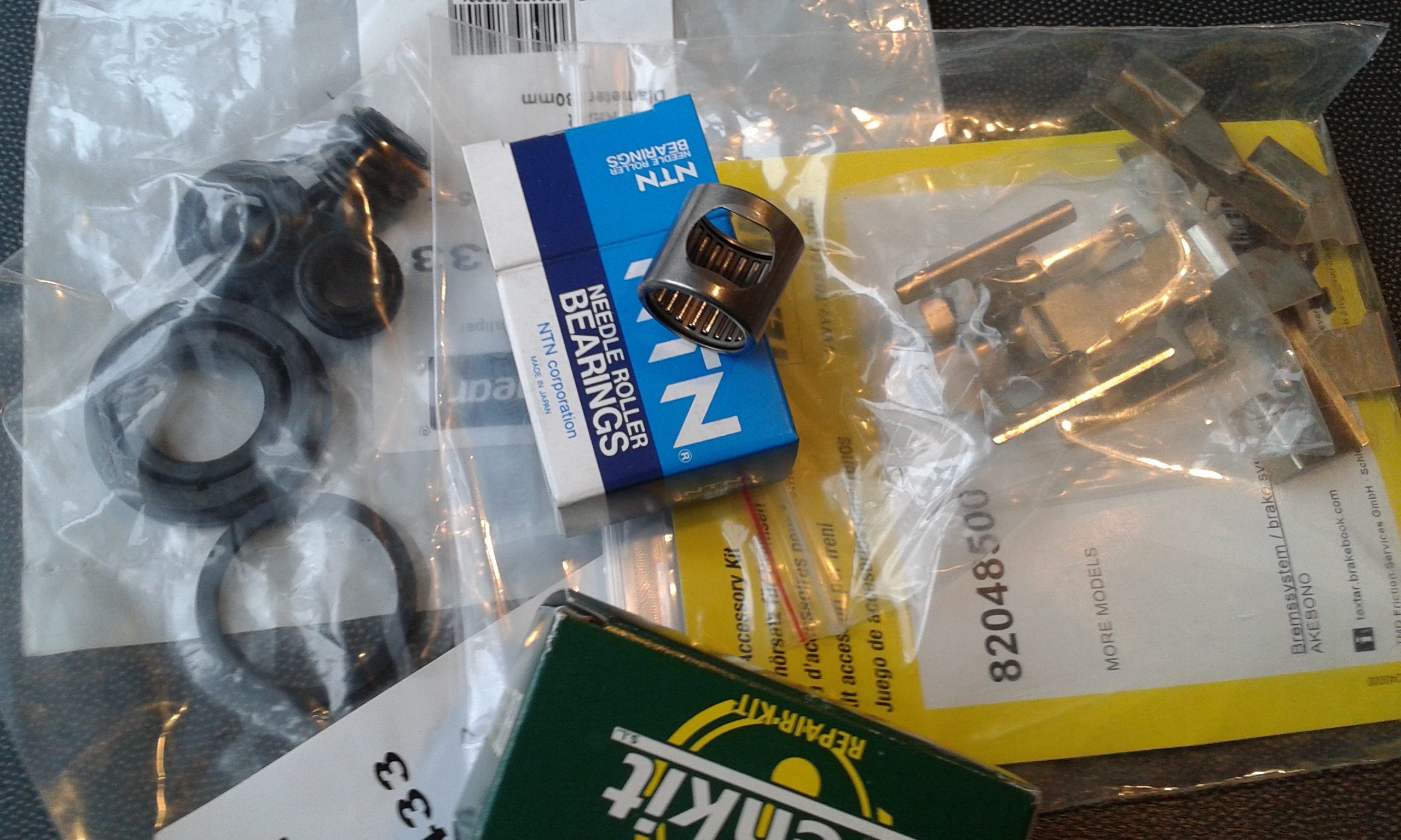 Objednal som nové tesnenia a poskladal všetko dohromady. Najviac problémov bolo zo zadnými brzdičmi. Rozmontovanie mechanizmu ručnej brzdy bolo v pohode. Zloženie už nie. Tam bolo treba prisposôsobiť segerove klešťe aby sa dali vtesnať do vývrtu a nasadiť nimi segerove závlačky. Druhý kus som skladal asi hodinu. Stálo to za to. Mám aj foto brzdičov po roku používania. Korózia žiadna, len prach a špina.