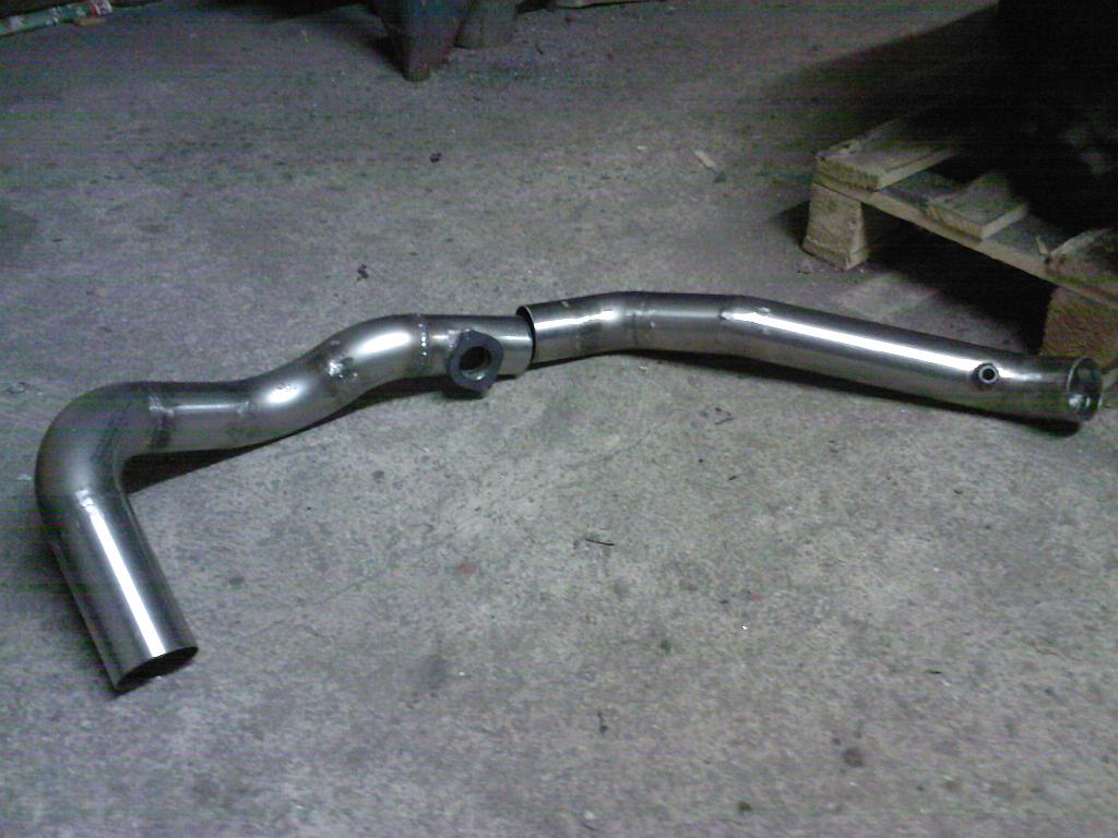 Takhle vypadá potrubí na autě (ještě nenastříknutý hliníkovým lakem). Zatím je tam jen studená část. Teplou dodělám až bude nasazený turbo, abych si to mohl pořádně rozměřit.