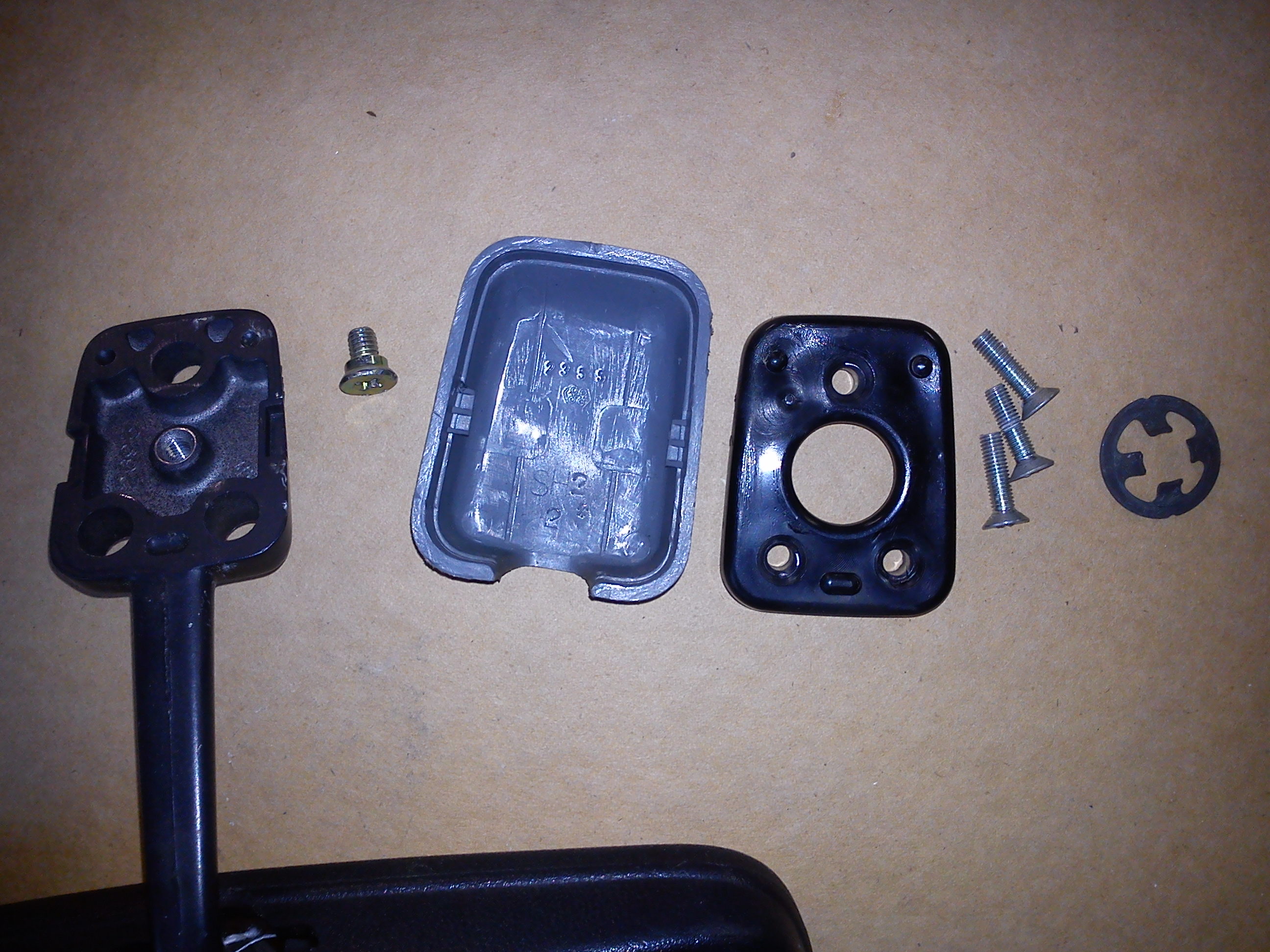 Pak pouze vyšroubujte tři šroubky a zrcátko je dole...