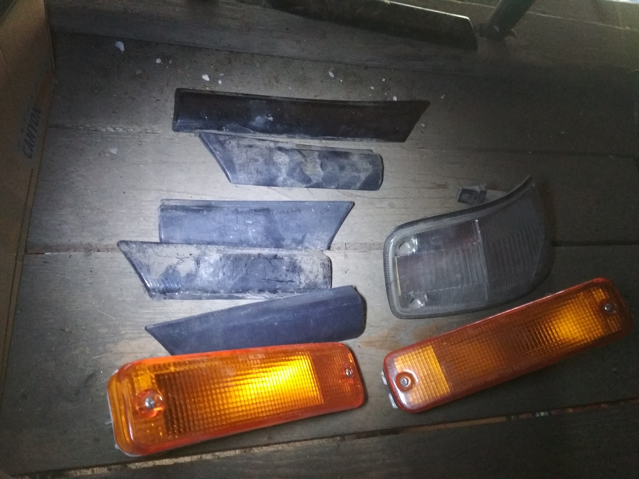 Lišty komplet a přední světla na předface. Levé zadní a středové světlo.