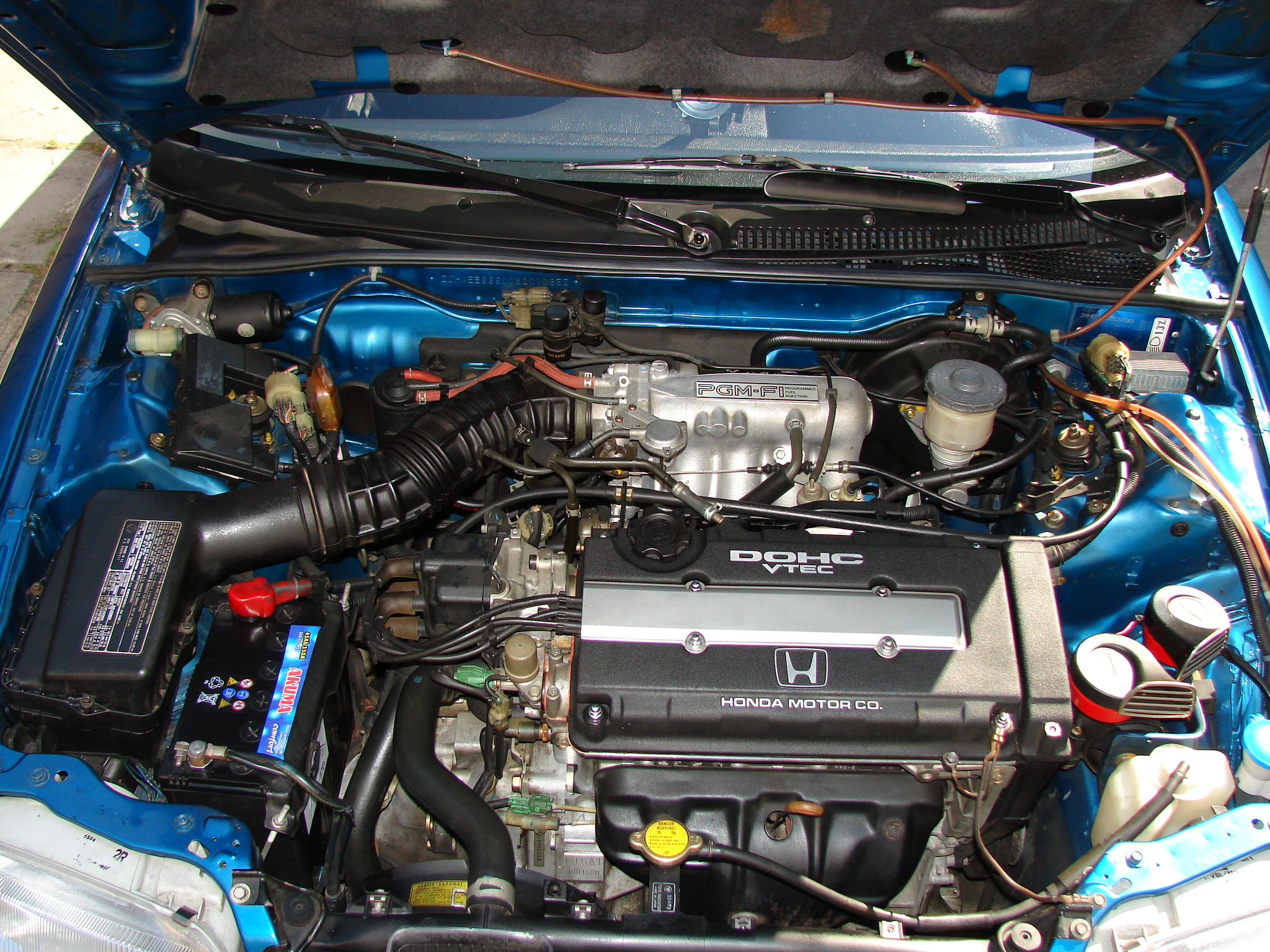 CRX EE8 VTEC B16A1 110 kw+(zvětčená komprese),Najeto 162 tis/km,posledních 5 let auto najelo 300km měsíčně vždy 80 km z místa A do místa B,jinak stálo dost venku takže karoserie má kosmetický vady.Motorově ale hodně dobré-pokud mohu posoudit s předchozími B16-kami co sem měl,celkově 4 EE8 a jedna EE9 tak to je druhej nej motor co sem měl(dokonce je lepší než můj setupovanej na mé července z čehož nemam radost).Převodovka by údajně měla škrtat ve vyžších otáčkách na trojce,ale zatím se mi to nestalo,řazení jde ztuha ale to je podle mne tím že to jezdilo trasu celou dobu za 5,tak je třeba trochu rozřadit