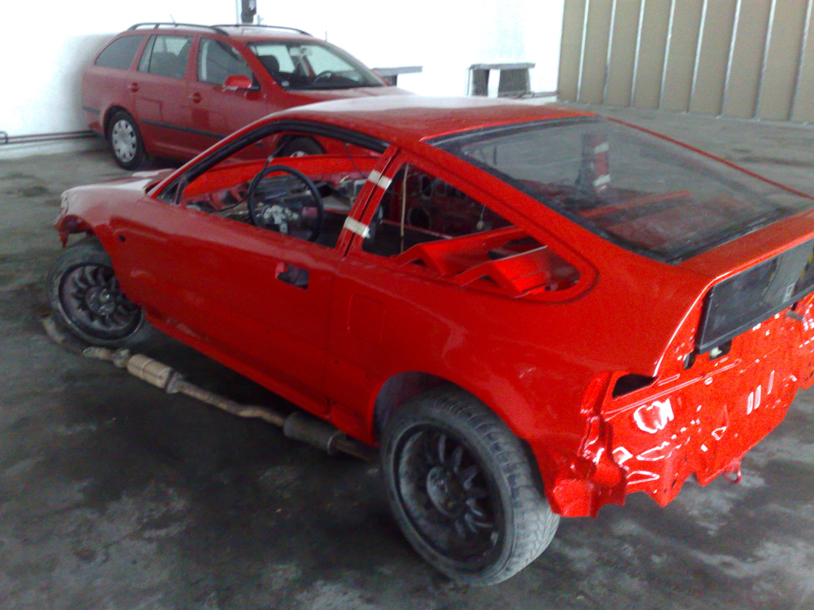 Kastle. To je kastle s nárazníkama, kapotou, světlama, se všema dveřma a oknama na kterých jsou čiré bezpečnostní folie, závodní zrcátka. Dále kompletní nápravy se sportovními tlumiči Koni, s brzdami(nové kotouče a destičky FERODO, ve předu DS 2500), se servořízením, které jsem dodělával i se servopumpou. Nádrž. Motorový prostor by zůstal nastrojený. Rozvod benzínu v pletených hadicích. V interiéru bezpečnostní rám dle přílohy J, kompletní plaubka, na dveřích a pod okny kevlarové výplně. K tomu ještě i sériové doklady s SPZ a STK do září 2012. Ještě spousta věcí, ale na ty si nevzpomenu.