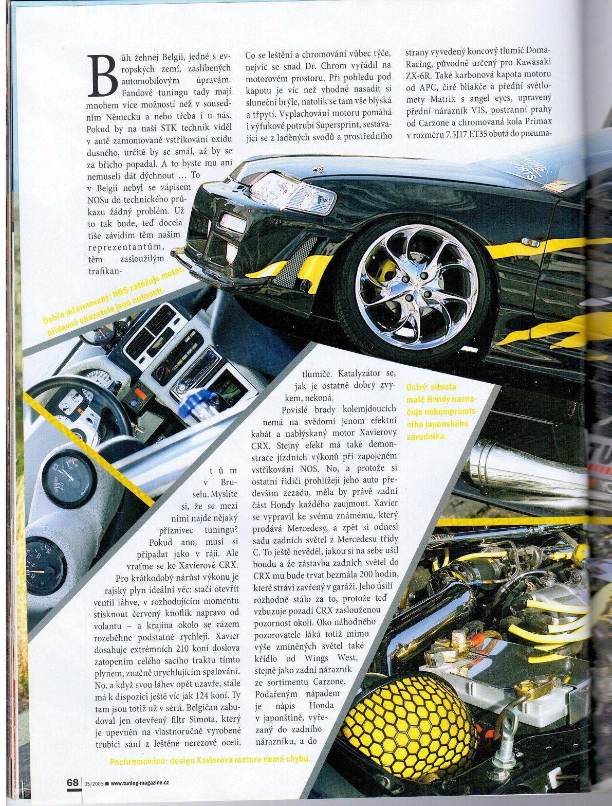 Takže :) ...mnozí si všimli, že se nám tu začal objevovat jeden človíček s nickem "skritek" :) Skoro každý blázen do CRX o tomhle správném bláznovi alespoň jednou slyšel, už je to taková legenda :) rád bych vám tohoto velmi šikovného kutila představil i zde a to hned 3 články o jeho výtvorech *slint* s crxem tu máme pouze méně kvalitní sken, ale brzy bude lepší *fin*