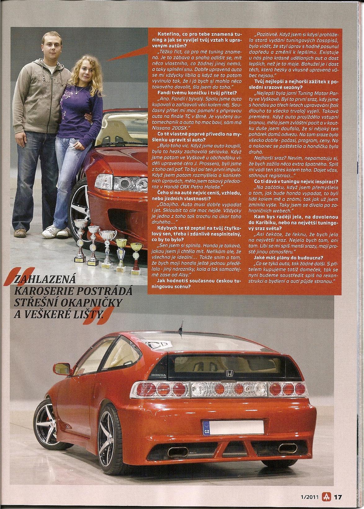 Autosport a tuning nekupuju, ale kvůli těmhle čtyřem stránkám jsem prostě musel :) Je to taková dobrá haluz. Nedávno, když jsem si byl kupovat vzducháč, tak mi dali jako dárek jedno starší číslo a zrovna tam byla ta Ivošova modrá V-Tec o který se tady Redy zmínil. Prostě náhoda, protože prodavač asi určitě nevěděl, o čem tam zrovna píšou, když tam těch čísel měl víc. :) A v tomhle novým čísle jsem objevil ještě jednu haluz - na stránce č. 105 je náš nový člen Hedvika (hedvikas) s její 1G :D *fin* *pohladit*