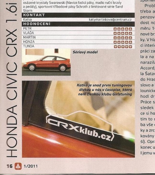 Zde jsem vytvořil malý seznam CRX srdcařů, kteří se pyšní na svém autě samolepkou našeho malého, ale šikovného klubu majitelů tohoto krásného vozítka Obrázek