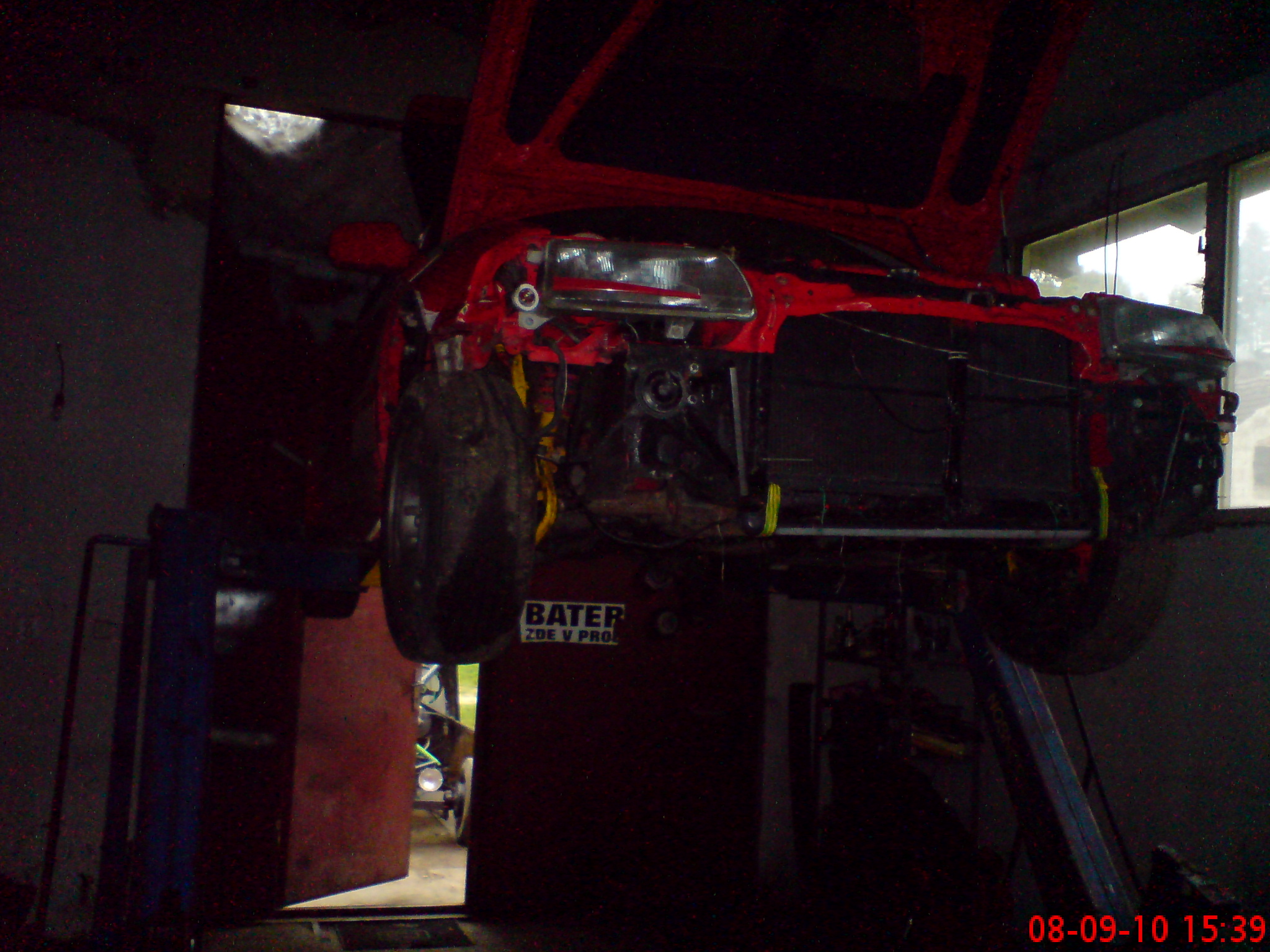 Přivalil jsem na drahu,zkusil jsem si první sprint,rozjel jsem se na 1,mrknu na tacháč 60,dávám za 2,cítím pěkný tah od motoru,ale něco je přeci jen špatně,tah nejde za otačkama,mám podezdření na né moc dobře fungující spojku.ale ipřesto jsem si ještě dal 3 jízdy,ale pak jsem se ujistil,co jsem si myslel při prvním testu,že ta spojka už je docela v špatném stavu,měl jsem pak problem najet i na podval.Tak jsem vyrazil zpět na dílnu,tentokráte líp vybavenou ke kamarádovi,kde crx stálo po zbytek léta.Vyndal jsem spojkovou lamenu,přítlačák,který byl už hodně špatnej,a od minora jsem získal sice stárší ale v moc dobrém stavu,dal jsem novou spojku tedy,ale pak se mě nečekaně se pokazila vodní pumpa a altík přestal dobíjet.Tak jsem se naštval,dojel jsem pro altík za skřítkem s našim servisním vozem formanem,který se startoval 2 ránama kladívkem na rozdělovač :D ,koupil jsem ještě novou vodní pumpu,novou rozvodovou sadu,gufero atd.Ale tak nějak bylo málo času to dodělat,tak jsem ho nechal stát u kamaráda u dílny.to už byl podzim 2009.Mezitím jsem si stavěl další auto,když v tom mi v půlce října kamarád jednoho dne zavolal,že mé crxko se jeden blbeček pokusil ukrást od něj z dílny,což se mu málem podařilo,ikdyž měl odjezdovou cestu neprůjezdnou skrz další auta,což mu vůbec nevadilo a vzal to kolem plotu k bráně což se mu naštěstí nepodařilo,páč se zasekl o další auto a pak vylezl z okýnka a zdrhnul.Když jsem viděl druhý den jak mi pěkně odřel celou pravou stranu a promačknul levy dvěře,neměl jsem slov.....,vzhledem k tomu že jsem neměl dost času a sílu to opravit hned tak jsem to po došetření případu přes policajti,crx zazimoval.Stálo takto bohužel až do března 2010,to začla oprava zas na novo,tak jsem zas zajel za skřítkem pro zánovní dveře,koupil jsem nový čepy a dalších pár věcí.