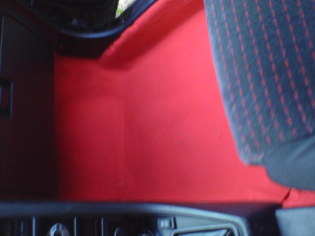 Stary koberec som vyhodil z auta ešte pri vyvaračke.. Najprv som skušal ten červeny koberec (je to potahovy material na autohifi) dat namiesto neho, Nastrihal som molitan asi 1 cm hruby na podlahu a na to som daval ten koberec... Lenže to bola chyba..vizeralo to otrasne a držalo to vlhkost..