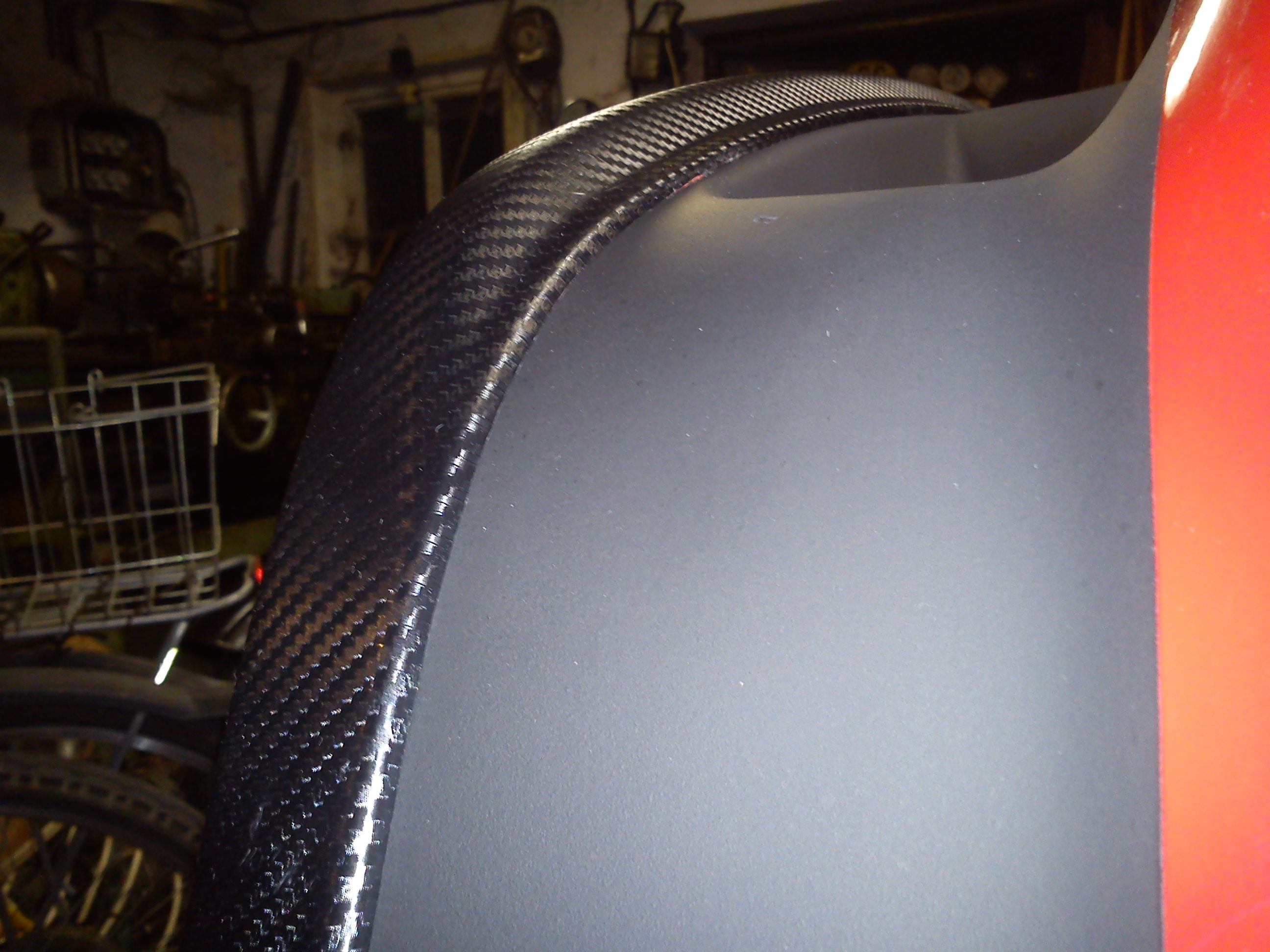 Tak dneska jsem konečně dolakoval přední nárazník a dolepil lip karbon folií, kdo s tim ještě nelepil tak moje rada je že lepší to dělat ve dvou lidech a né horkovzduškou ale fénem, já jsem na tom strávil bez mála 4 hodiny. Prahy už mam taky vyměněný za černý bez laku a chybí mi jen dveřní lišty a dolakovat zadní nárazník.
