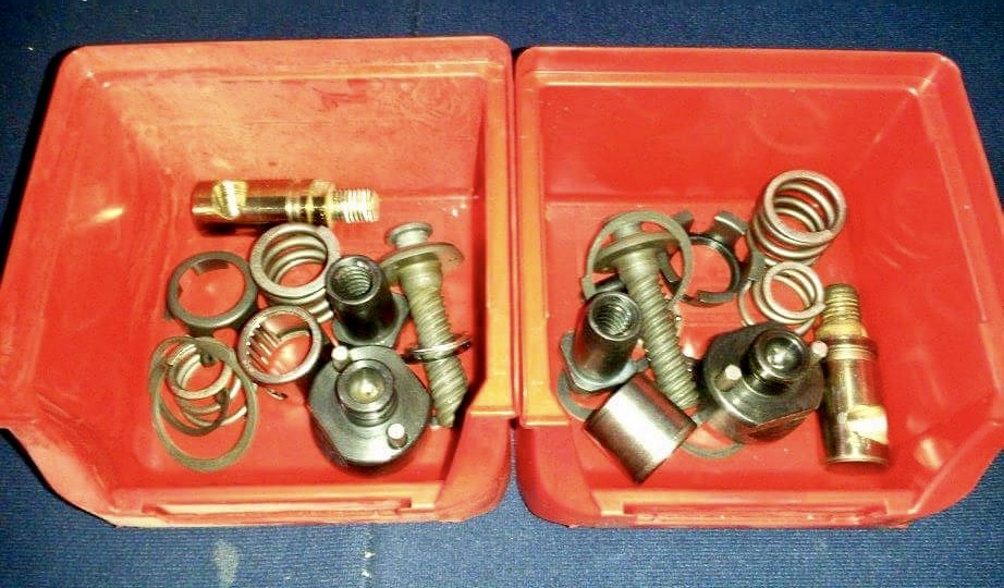 Poté, co jsme si prohlédli brzdové destičky upravené flexou tak, aby šly nabouchat do zatuhlých třmenů (cože?? ) jsme se rozhodli také pro jejich repasování. Pístky byly orezlé, vodítka suchá a zatuhlá. Zadní třmeny jsme nakonec, díky dobré radě od Wládi, rozebrali úplně, aby nedošlo k nějakému poškození v peci. Děkujeme za radu!