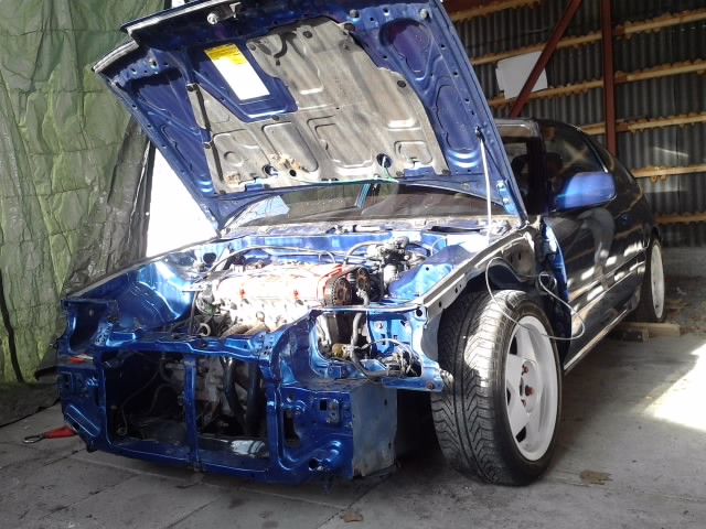 Tak pokračuju dál. Konečně jsem se zbavil zadního nárazníku, položil trochu k zemi, nalakoval ventildekl a koupil orange pozičky *dance* následovat bude hliníkovej plech pod motorem (trochu se bojim o olejovou vanu a vyfuk) a nový výfuk. Chci taky jiné tažné oko něco na způsob co dělá Benen *dance* Samozřejmě kola dál hledám ale nemohu si nic vybrat *dash*